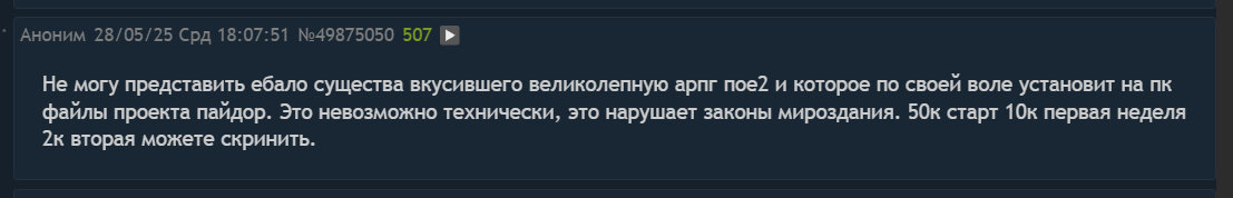 а все остальные типо тред не убили да бензокал пропал и сразу негативщина залетела какие то обсуждения пое рассуждения про билды совсем на голову пизданутые вылезли пое1 сдох давно они все в говне роются