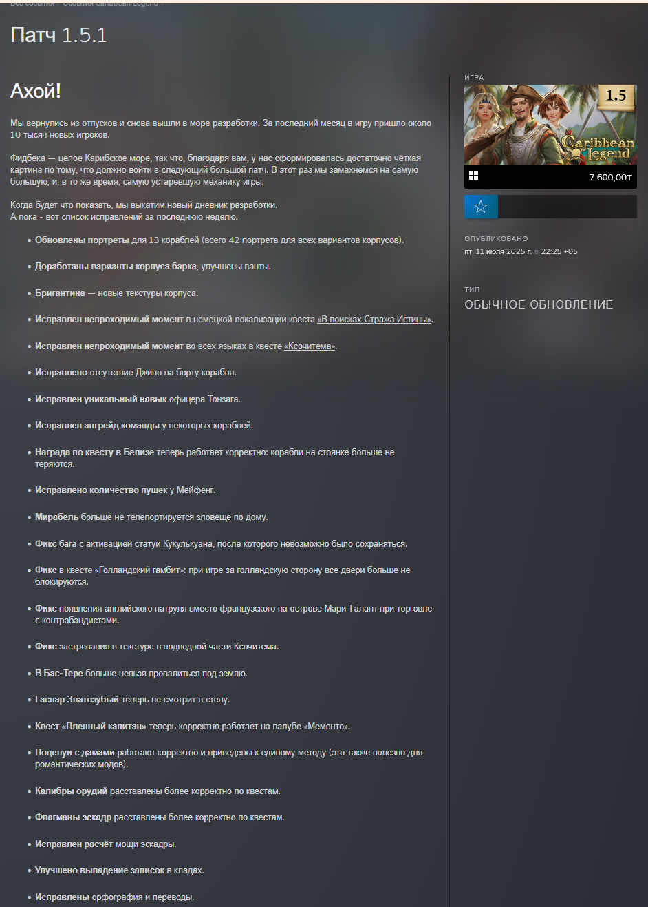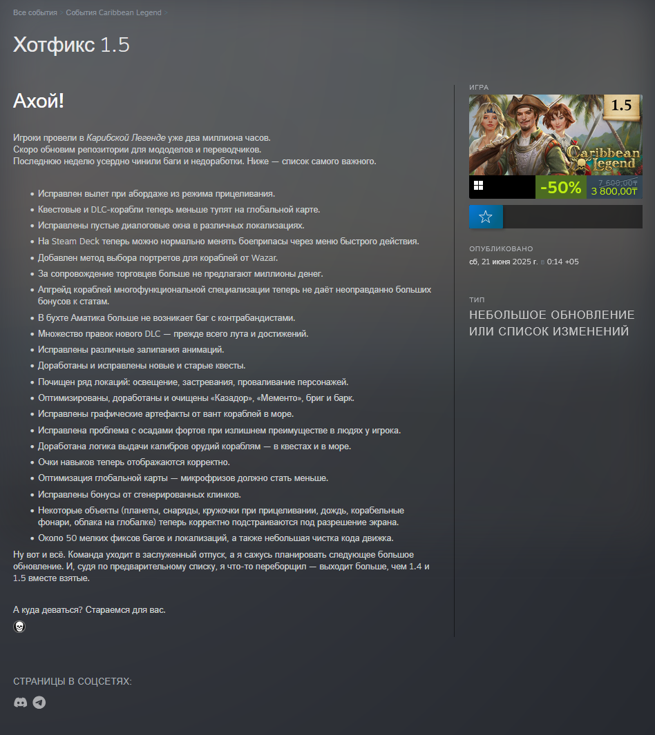 Коммьюнити Git https://github.com/Blackmark-Studio/Caribbean-Legend