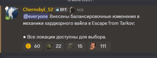 Хардкорный вайп вышел 9 июля, торговцы заблокированы на 1 уровне, из доступных изначально карт: завод, лес, эпицентр и таможня, барахолка закрыта, в подсумок нельзя класть патроны и медицину, цены на покупку упали, а продажу снизились, убежище требует в 2 раза больше материалов для прокачки