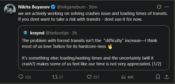 Вообще проблема пати это в первую очередь проблема онлайна. Т.к. никто не играет в игру (а обратное пока не доказано), то не из кого матчить балансные рейды. Типа если на таможню находит рейд из 5 тел, то туда же подсасывать пачки по 3, 4, 5. А на завод вообще отменить вход в 5ом. В идеале ограничить пати до 3, как было в трейлере. Либо если на завод идет пачка из 5, то против другой пачки из 5 и больше никого.
