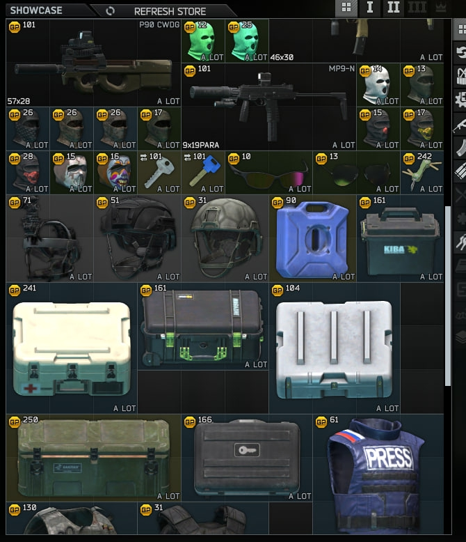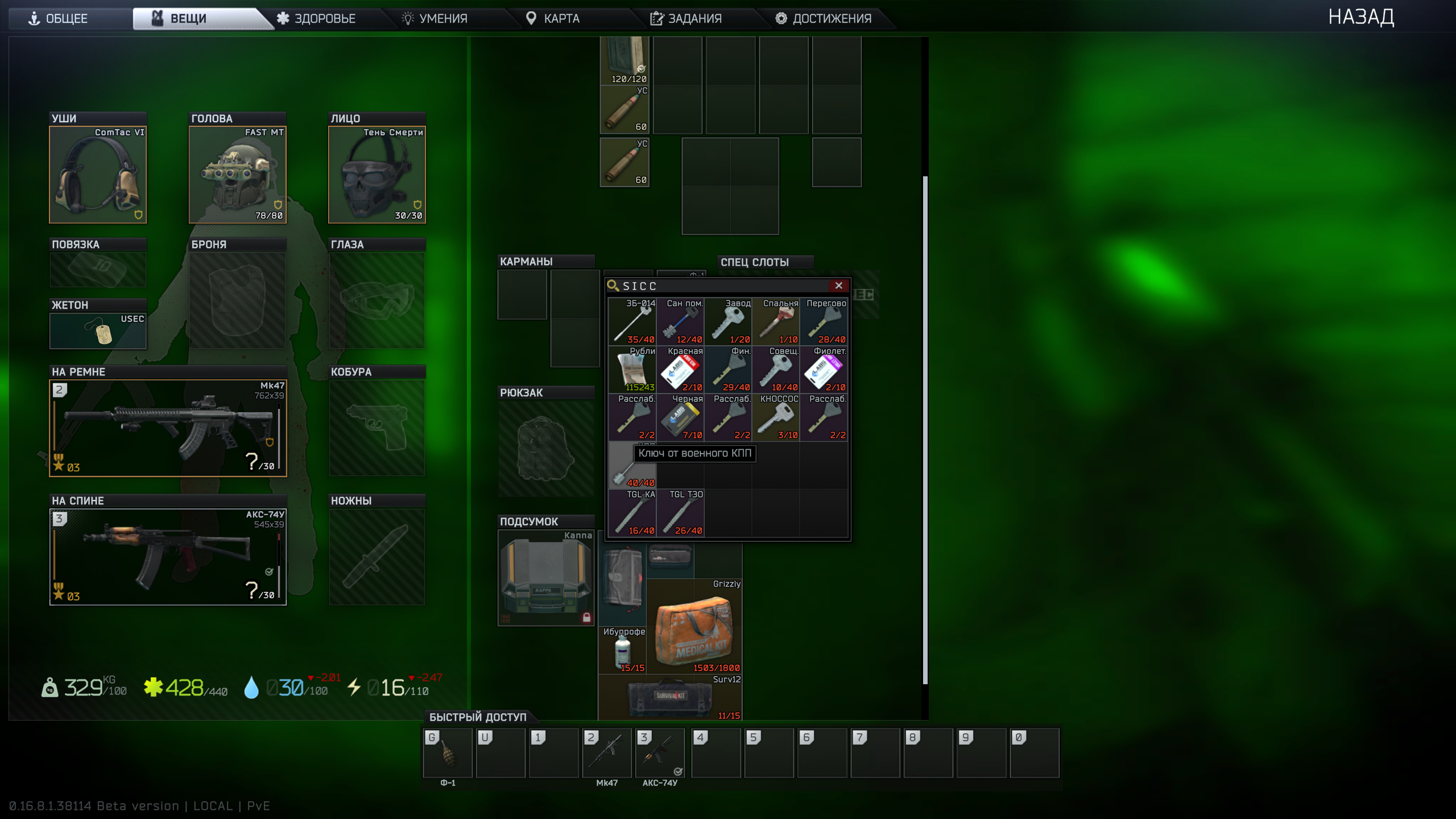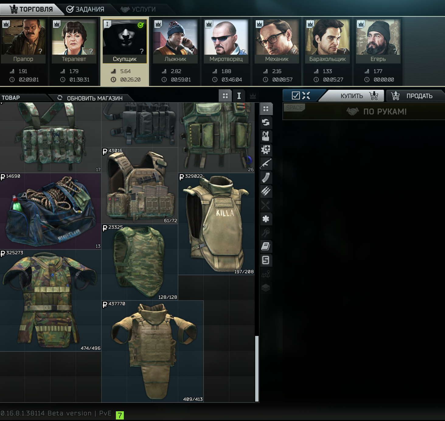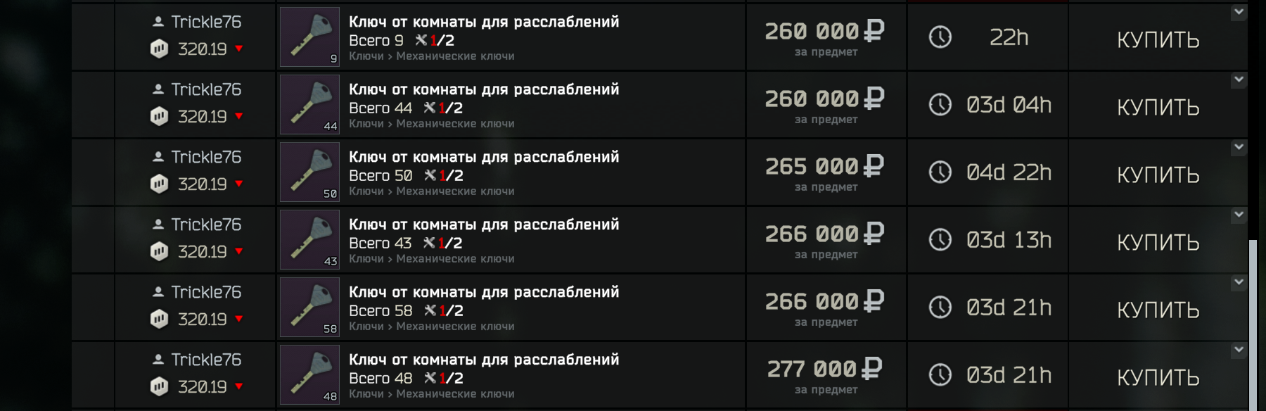 Сайт для отслеживания стоимости вещей в реальном времени https://tarkov-market.com/hideout