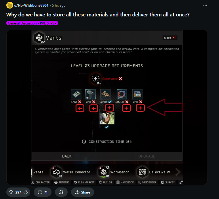 Профиты бартеров и убежища https://tarkov.dev/hideout-profit/