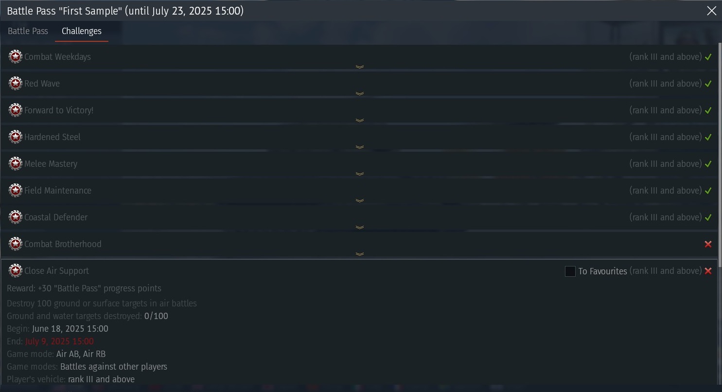 Наконец-то это дерьмо закончилось. Полез гриндить бп будучи нюфагом. Наземка играбельна только на ломах, и то до спавна читаков одним респом. Самолёты унылые, корабли ещё унылее. В августе уже в мт вернусь и забуду как страшный сон.