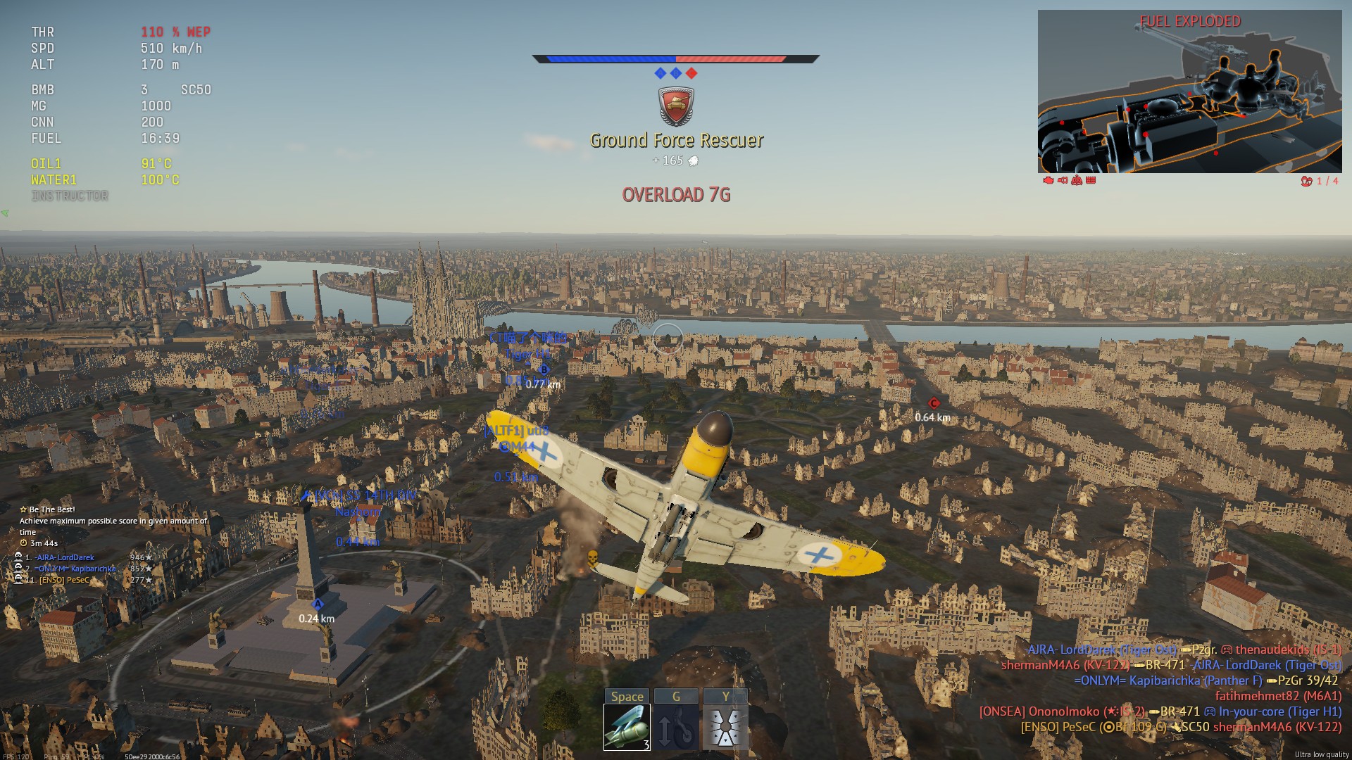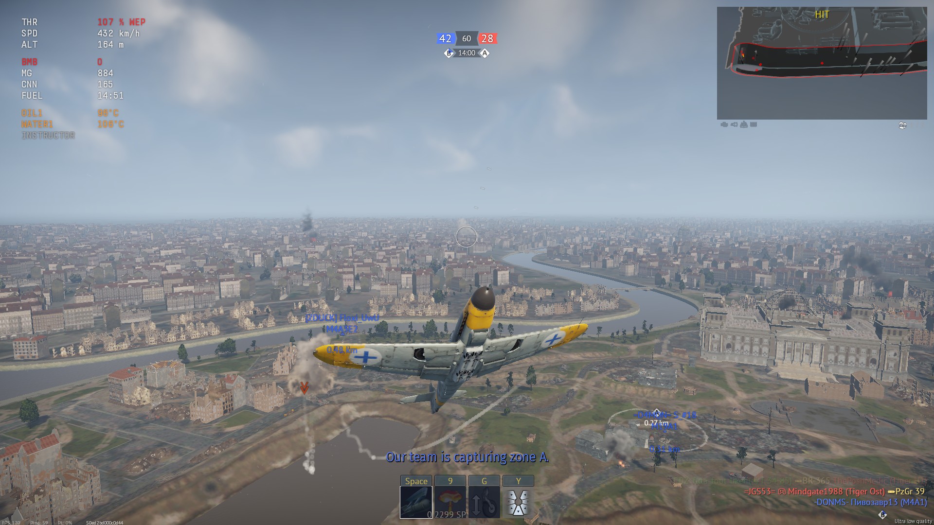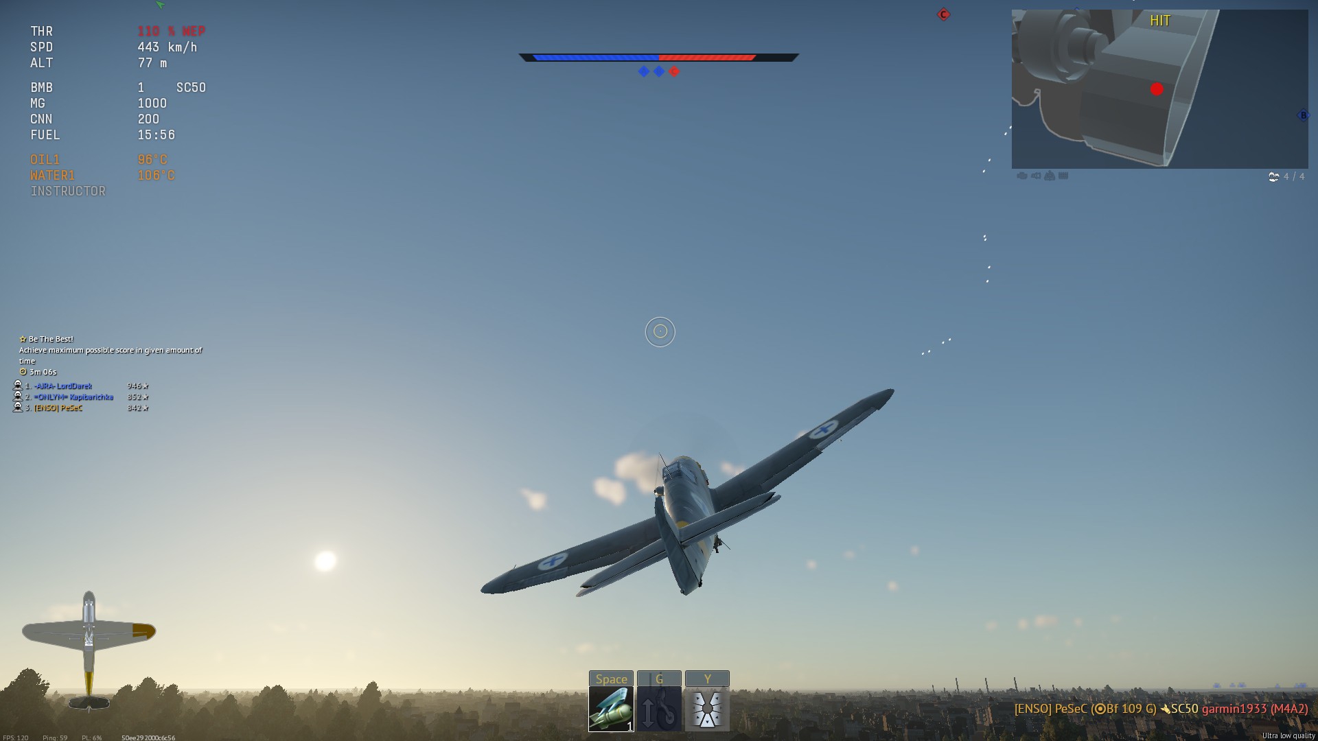 >>50028372 Бомби с пологого пикирования, тормози с помощью шасси, если разгонишься больше 600. Когда тяжелые бомбы откидаешь, можешь и с крутого. Подвесы - 3 1000фнт и 4 500фнт, задержка в идеале 1с, но часто будет цеплять сплешем.