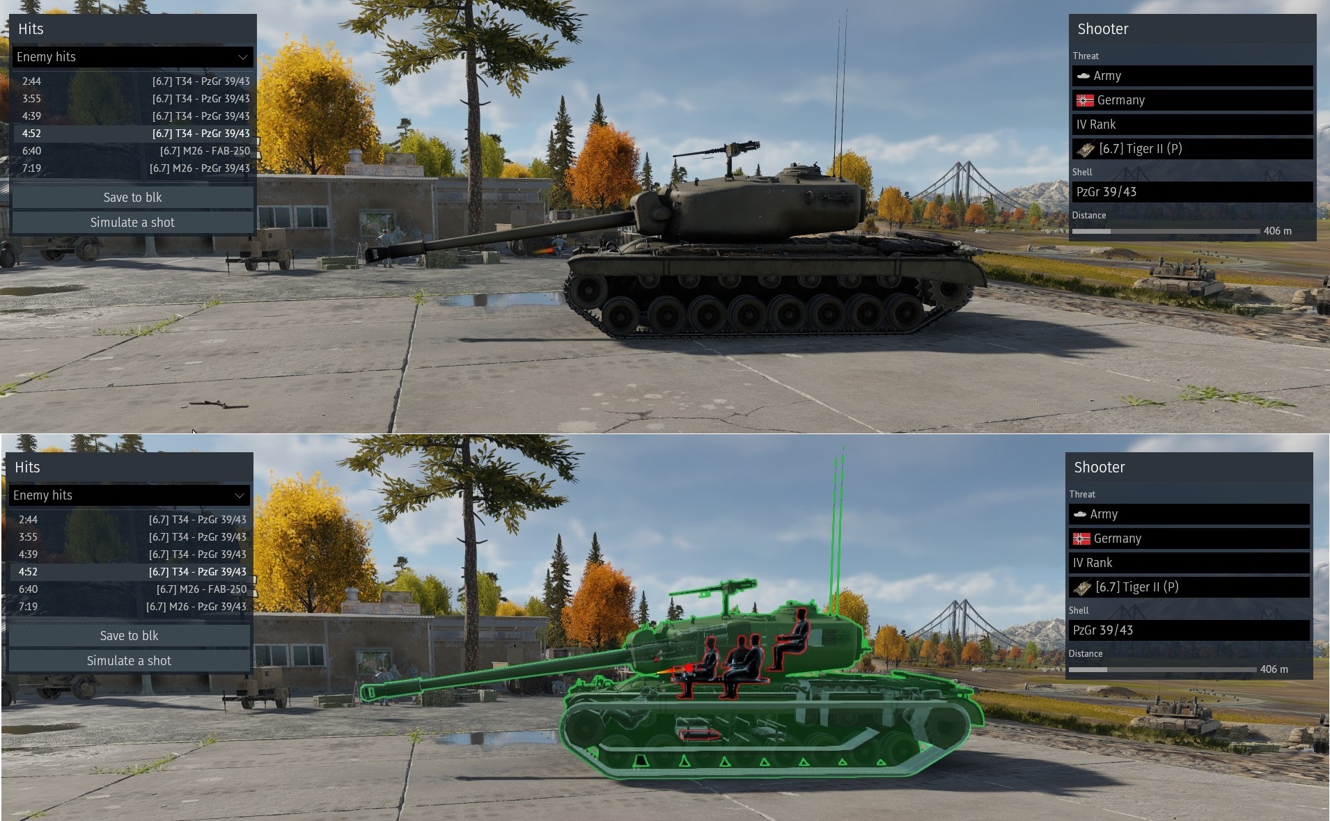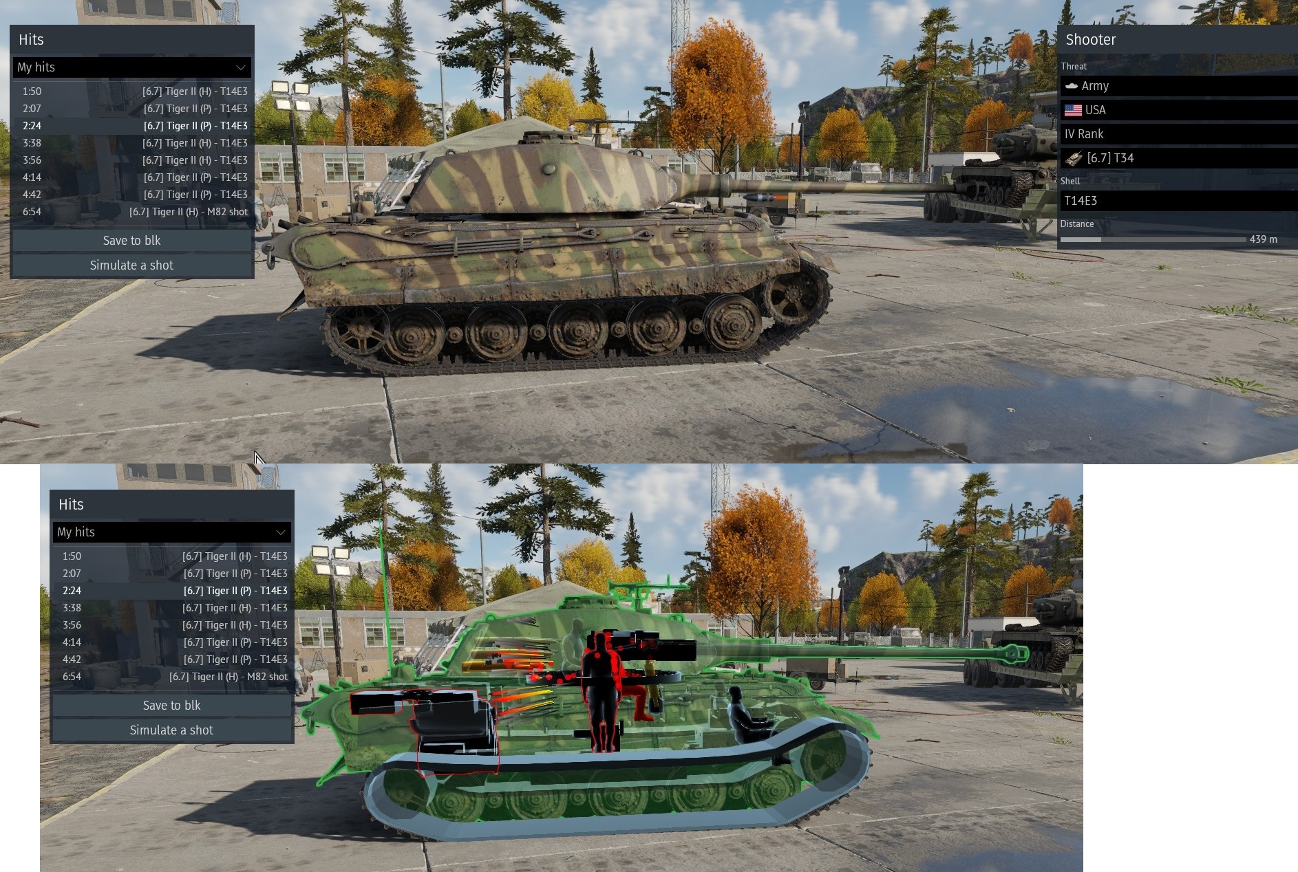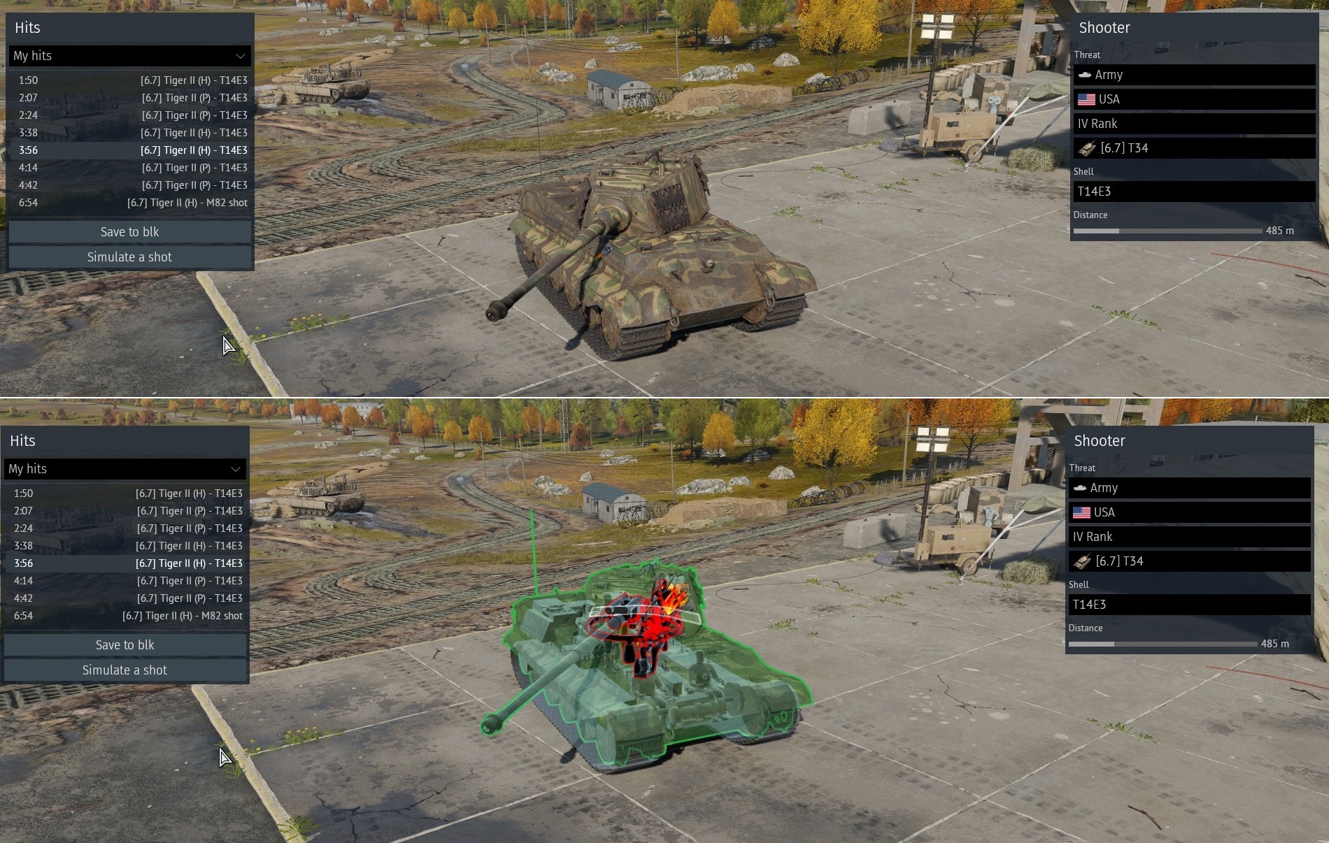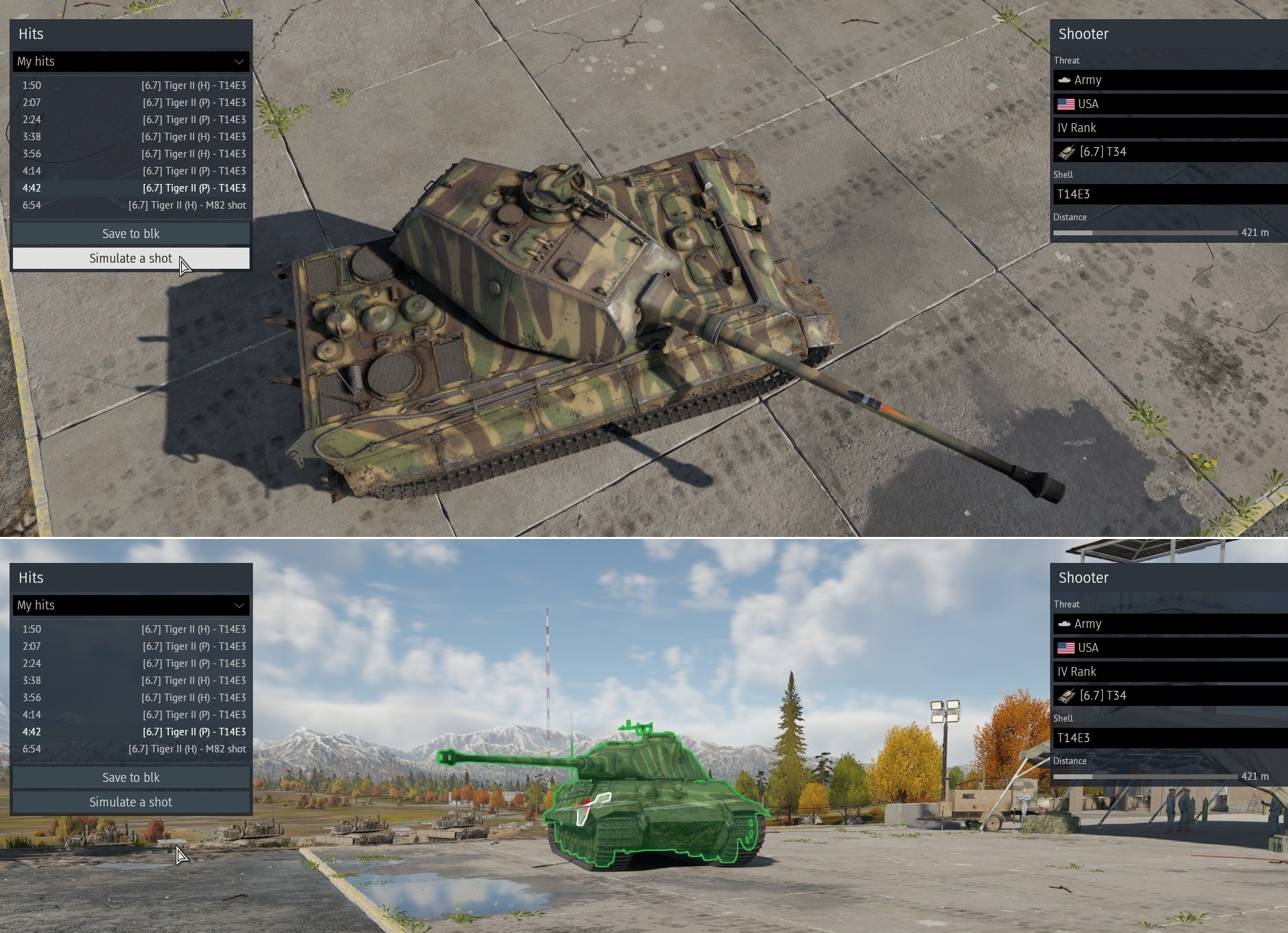 Аля вот такой кривой выстрел, но даже так - все абрамс минус, на него надо потратить просто второй лом. Тешка почему то при лобовом пробитие в АЗ вообще не получает повреждения критически важных модулей. Про убийство даже речи нет.