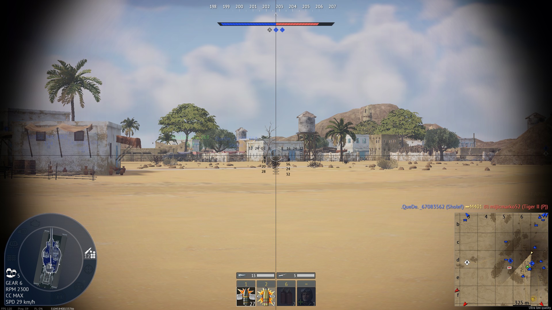 >>50055423 Без ультралоха есть удобные фильтры. По факту основные плюсы - нет травы от третьего лица, слепящего солнца и верхнего слоя земли. Как по мне - ни того, ни другого и без ультралоха быть не должно. Непрорисовка препятствий, как неразрушаемых камней, так и разрушаемых заборов, роляет очень редко даже на картах, где это заметно. Тлдр: минималки с макс текстурами и настроенным фильтром лучшее в плане читаемости, чем ультралох.