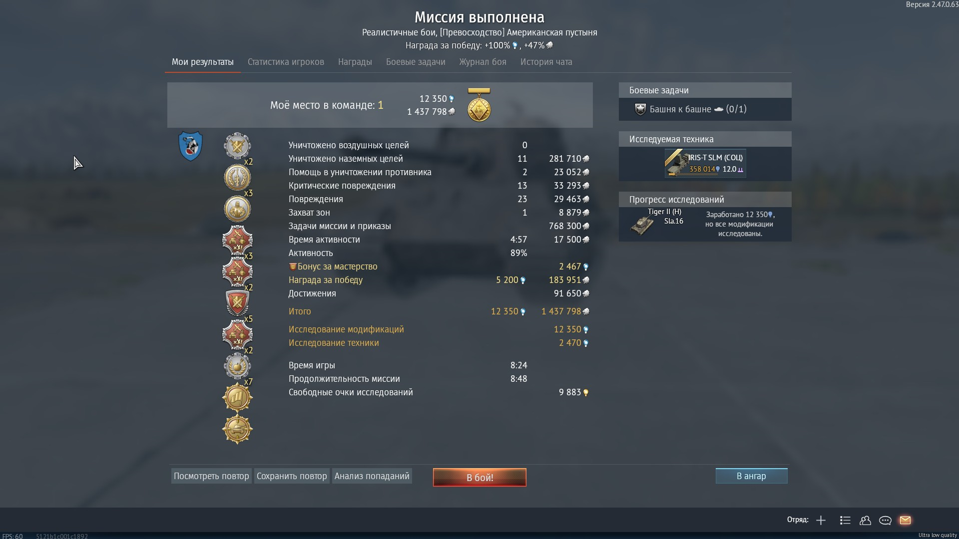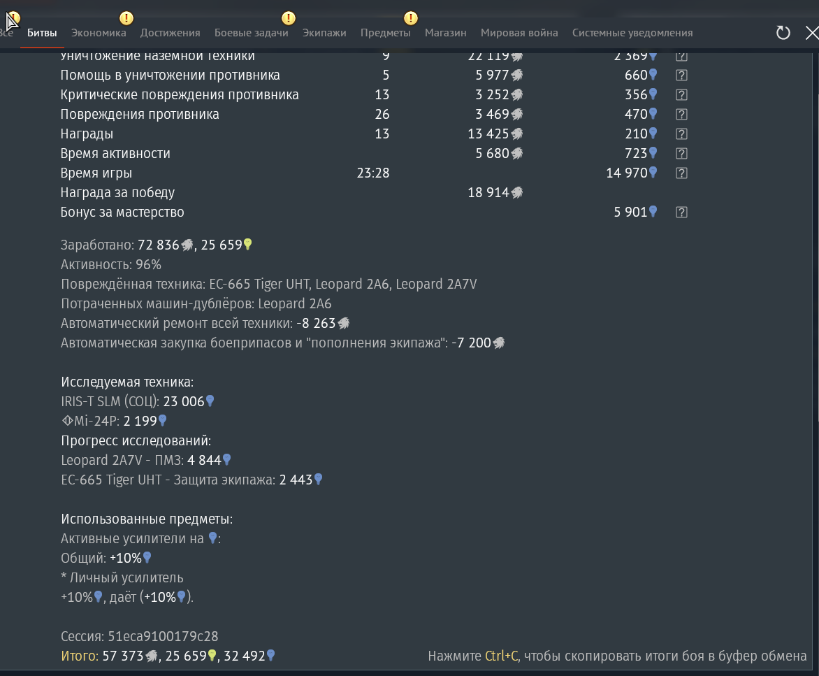 Итого 14 часов ЧИСТЫХ БОЕВ В ТУНДРЕ НА ПРОКАЧКУ ОДНОЙ ТОПОВОЙ МАШИНЫ. А потом вам её еще из стока выводить, ага.