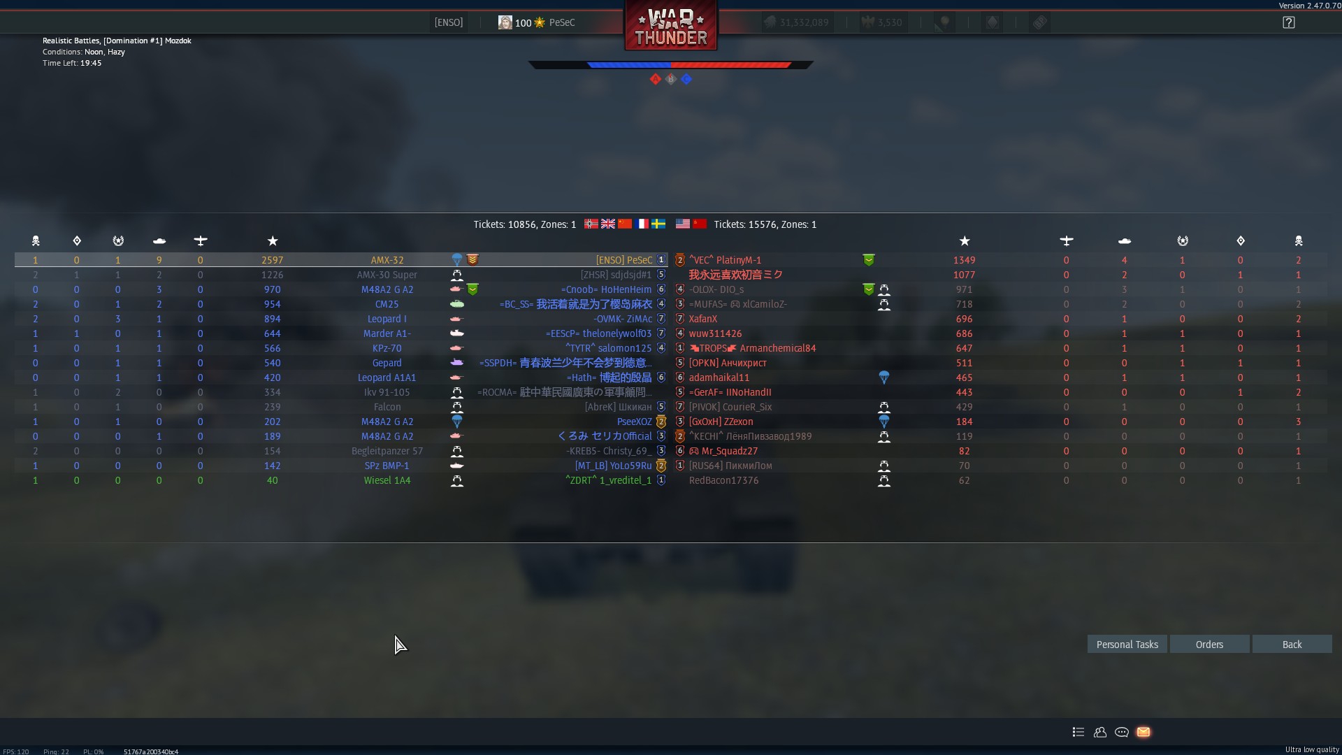 >>50029080 Как раз недавно качал францев на 32ке, танк неплох, но определенно слабее одноуровневых. Его спасает только наличие тда+теплака, что в связке позволяет делать лишние фраги. В остальном это танк совместивший все худшее от совок и натокала. Вертикальная скорость наводки как у совка. Брони нет в лучших традициях натокала, у этого еще и пушка низко в башне сидит, и тебя будут от холма в крышу попускать. Бк в башне, тебя щелкают в казну, снаряд проходит навылет, попадает в бк, ты в ангаре. Задний ход на бумаге хорош, но задержка перед переключением задней передачи такая, что совок с -8 быстрее сдаст назад чем ты. Шишка на башне чтобы бмдшки могли тебя давлением с птура/фугаса ебнуть. Автопушка в башне неудобная, но спасти может. 32ка с 120мм с оочень большой натяжкой сидит на 9.3, я бы ей дал 9.0, и то из-за теплака с тда. Что там делает 32 с 105мм, которая точно такая же, но хуже пушка и снаряд, я вообще не представляю, ей место на 8.7, чтобы его совки в влд каморниками ваншотали.