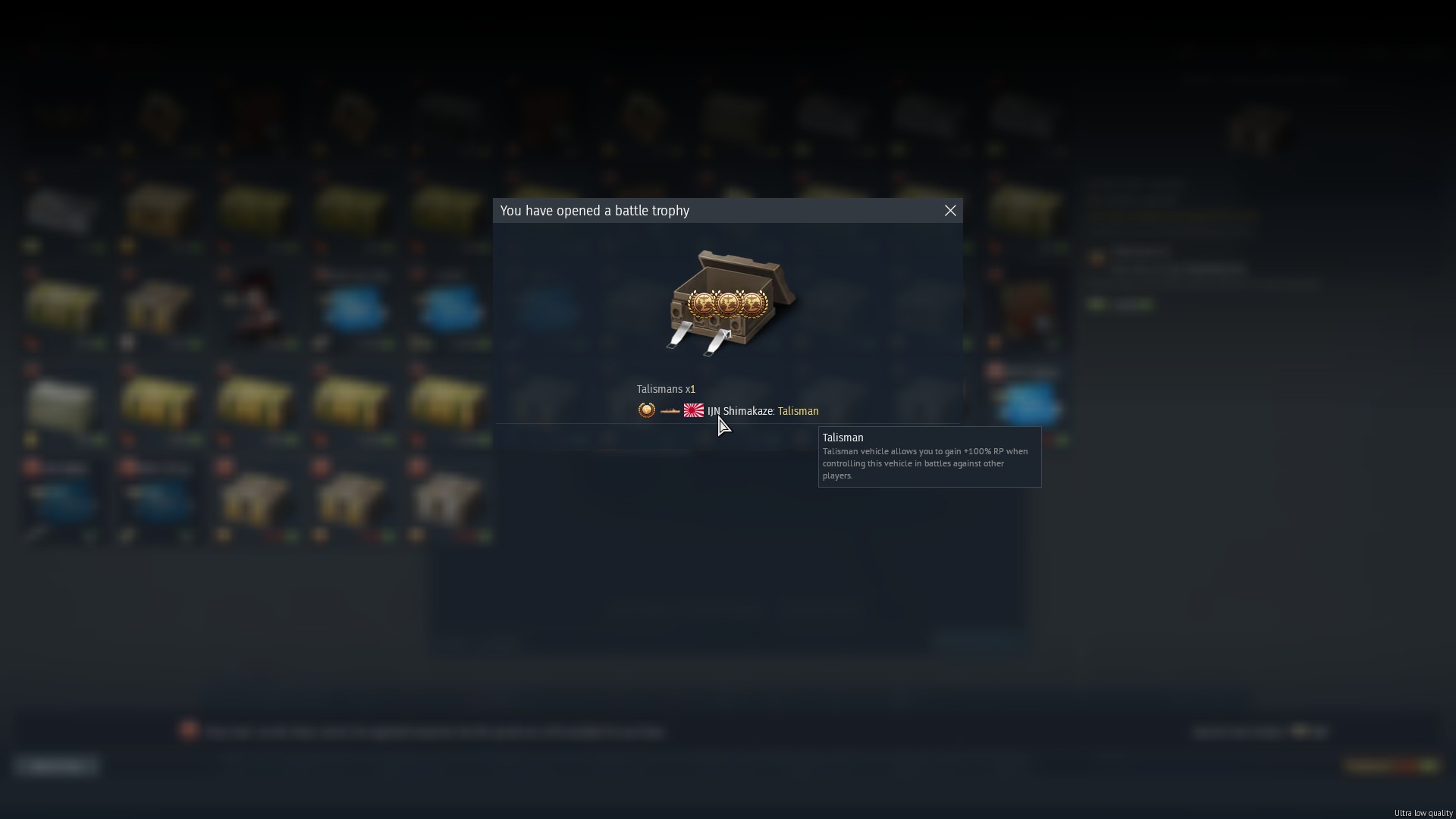 >>50059967 Картинки на рулетке - обман для гоев и значит лишь то, что в этом сундуке в принципе с шансом 0.00000000005% есть эта награда. А что ты получишь определяется не позднее получения трофея, т.е. нажатия на кнопку.