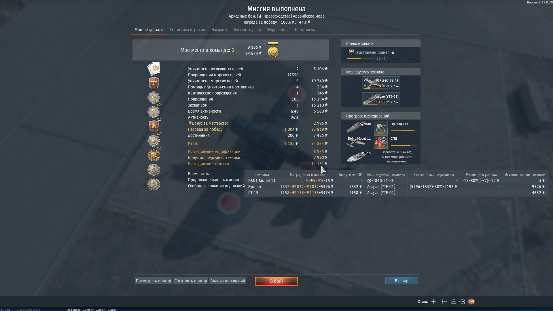 Удачный бой, исследовал фулл модификации одной ступени на самолëт, одновременно с исследованием нового летака. Игра сначала предложила раскидать очки в модификации самолëта, а затем уже выбрать новый самолëт для исследования. Бонус ОИ со ступени ушëл в хуй. Спасибо, Жидя.