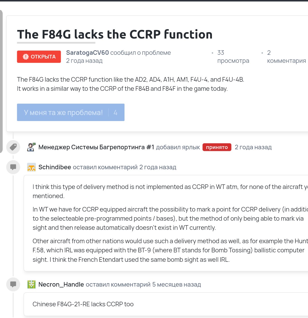 АХАХАХХАХАХАХАХ Оказывается на F84G должно быть навигационное бомбометание и об этом создавали репорт 2 года назад и они до сих пор не могут его добавить