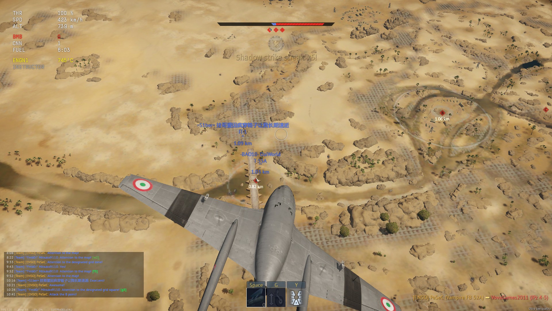 >>50016163 Тебе быстрее прокачать 2 ранг британцев. Есть аж 2 подходящих самолёта и ещё один на 3 ранге. Харрикейн с 40мм, темпест с 47мм, москито с 57мм. Все в классе штурмовиков. Из них имхо лучший - темпест. Для стрельбы по ботам можно целиться одной пушкой без сведения, для трб лучше поставить сведение и попадать обеими, чтобы урона хватило.