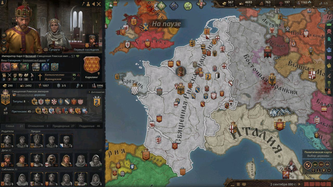 A: CK2 в противоположность другим играм линейки, наоборот стоит начинать с самых низов, дабы понять все аспекты игры. Самый оптимальный старт с минимальным риском слить партию — один из Ирландских графов, желательно, с 1066-го года, дабы не застать набеги викингов, которые доставят немало хлопот новичку.