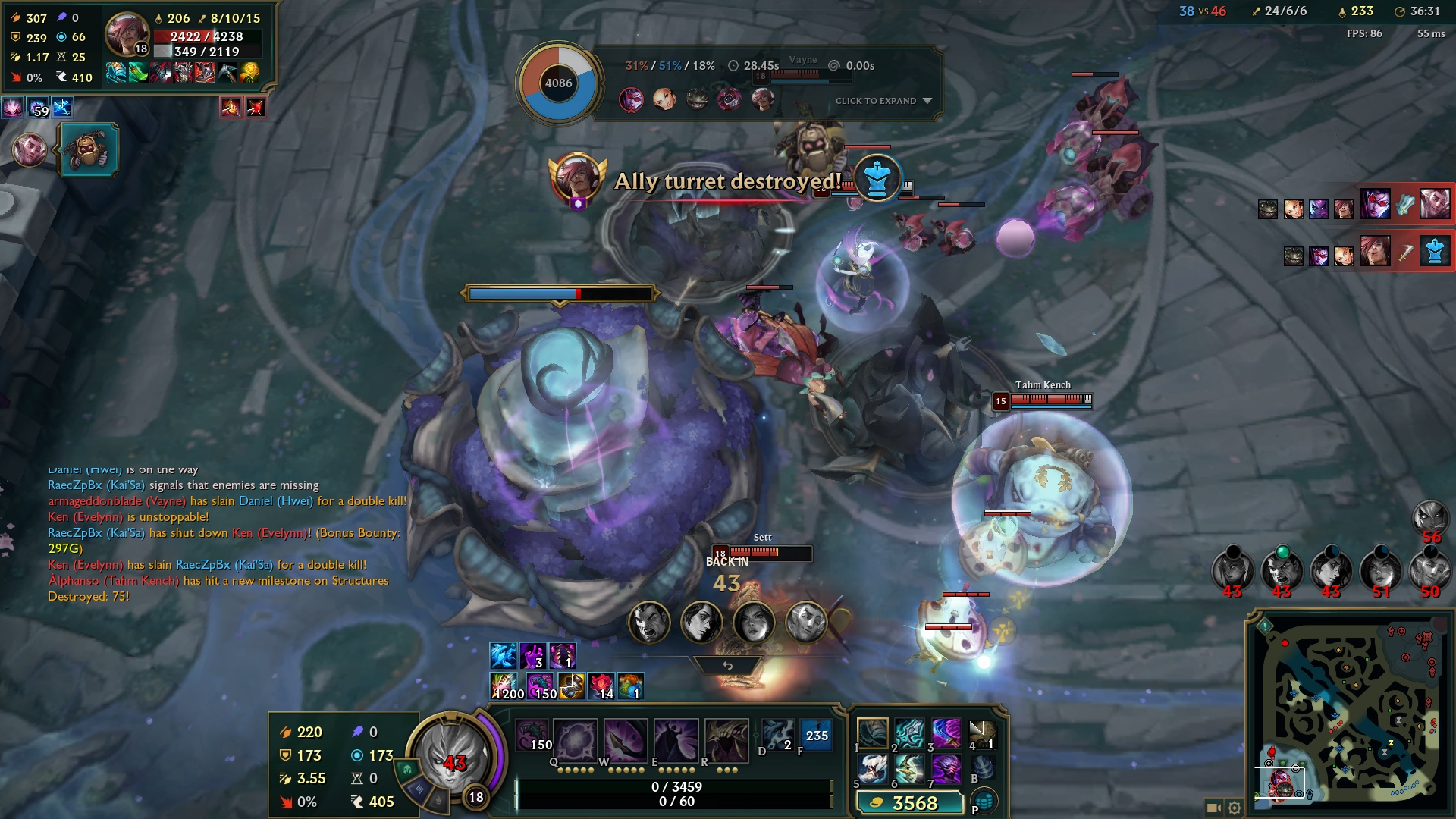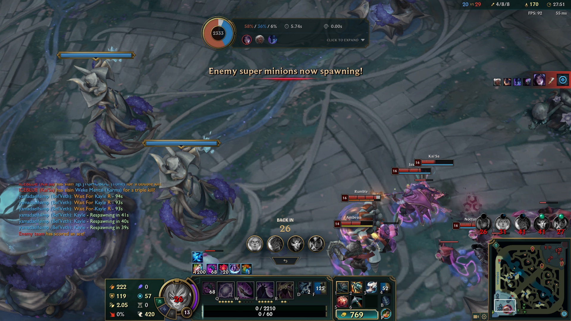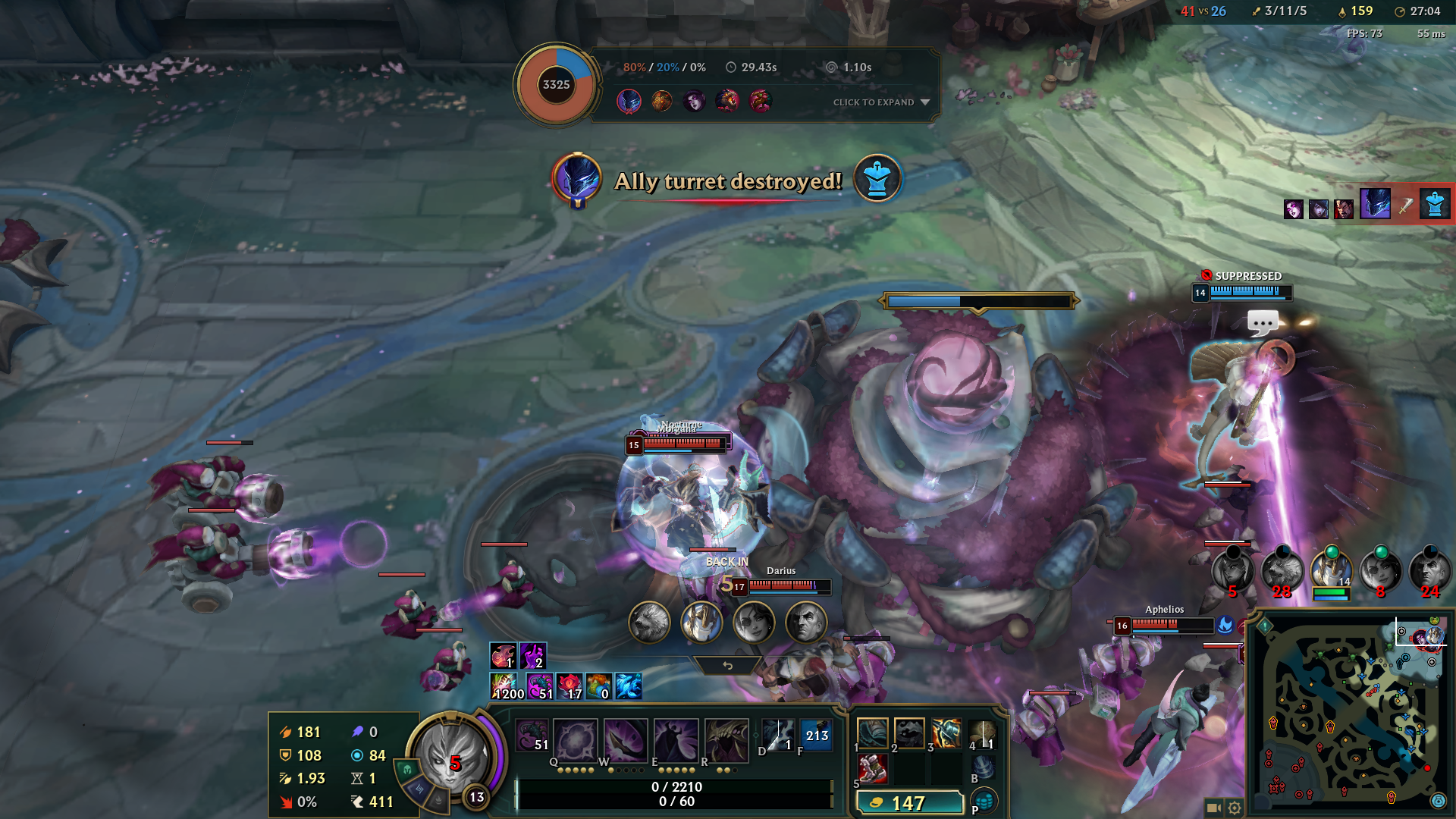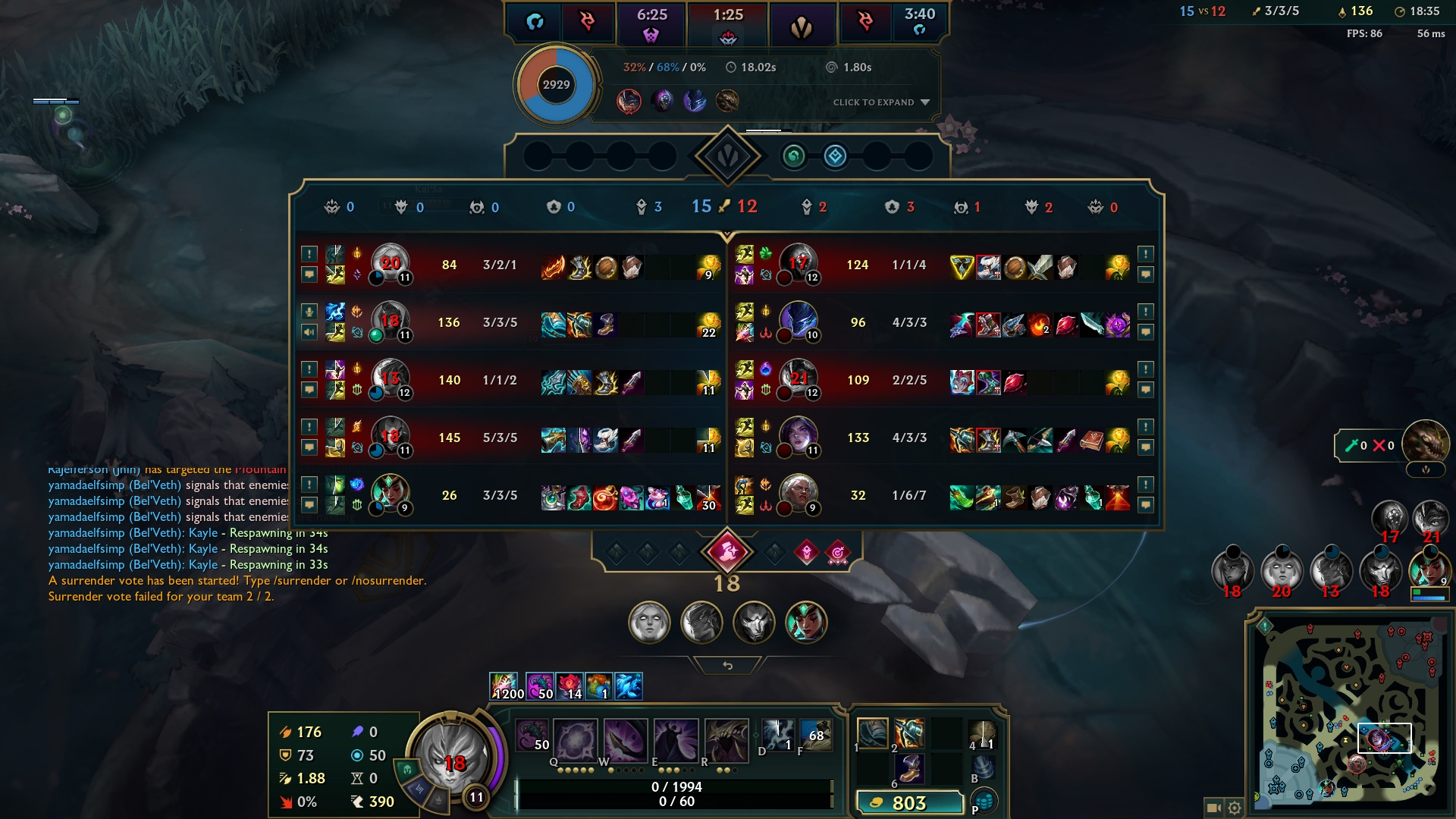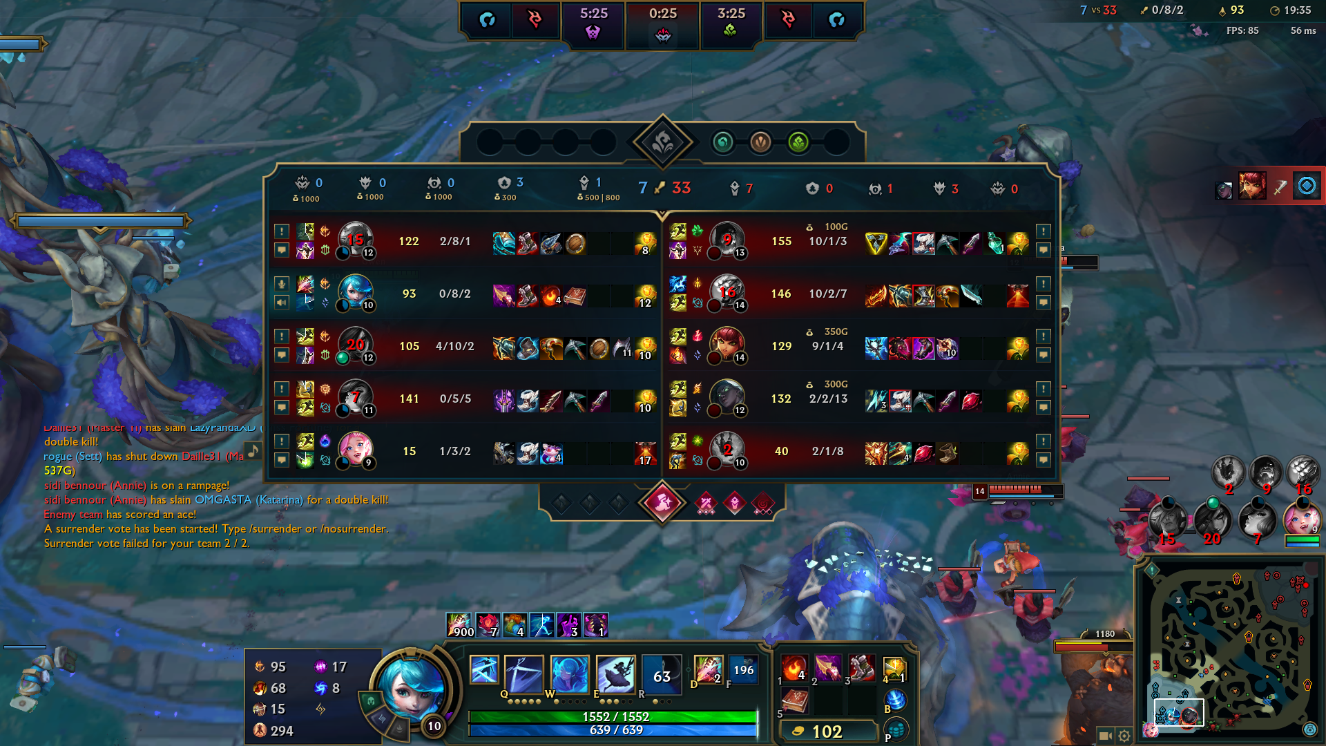 В субботу подумал, что какого хуя акк в П3, решил, что надо хотя бы до эмеральда 3-2 апнуться, решил вечером сыграть 4-5 плотных ранкедосов, стартанул первый ранкед, отыграл на фулл концентрации матч, счёт 7/1/10+ ассистов, на мне 700 голды шатдаун, взял 4 дракона и дал союзникам душу, показывал 25 минут активнейшего геймплея без ошибок и на 25 минуте из-за 100+ пинга через VPN, а вражеский Шако был скорее всего с Европы с 10 пинга, он просто пересмайтил меня на 1200 ХП у Барона, после этого меня убивают на миду и нас проносят за 50 сек моего серого экрана, союзники на которых я играл 25 минут не смогли сделать вообще ничего.