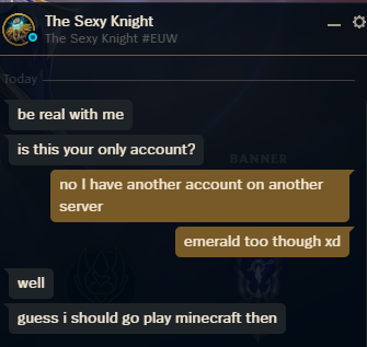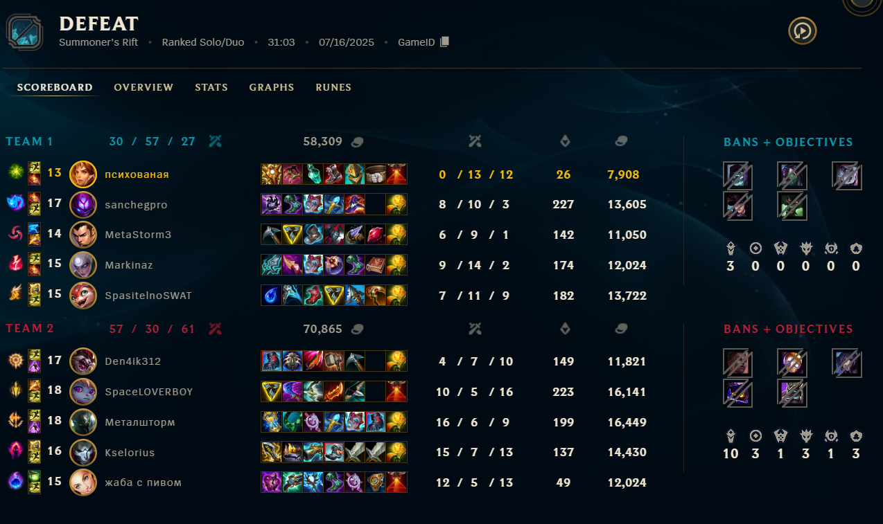 >>50071721 Вот мои тиммейты когда не слушают очевидные коллы так же делают минус тыщу лп. Очевиднейший колл взять игнайт на кошку и никогда не брать говнохил.