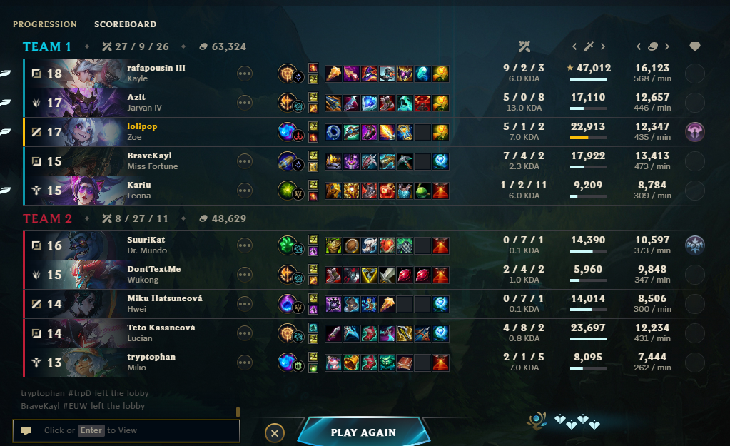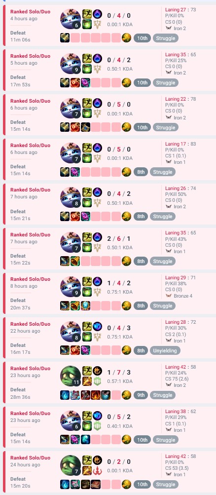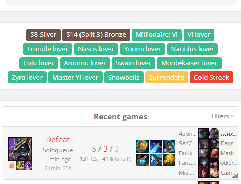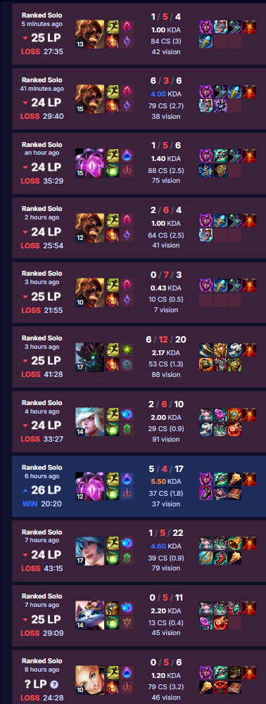 Сдаюсь когда вижу 4 бесполезных хуесоса в команде. То есть часто. Хз там риот решает мне четверых заавтофилить всегда или хз, почему они первый раз на своих чемпионах и ролях и не знают че делать.