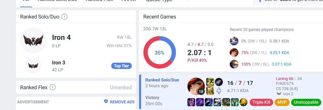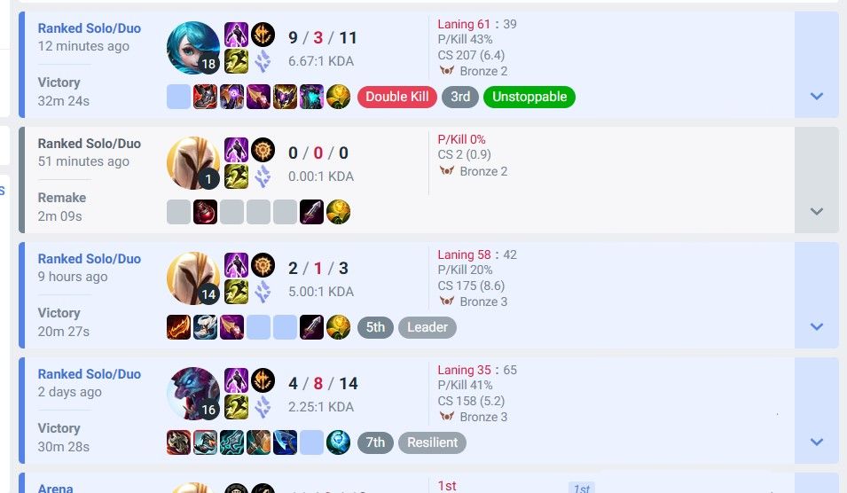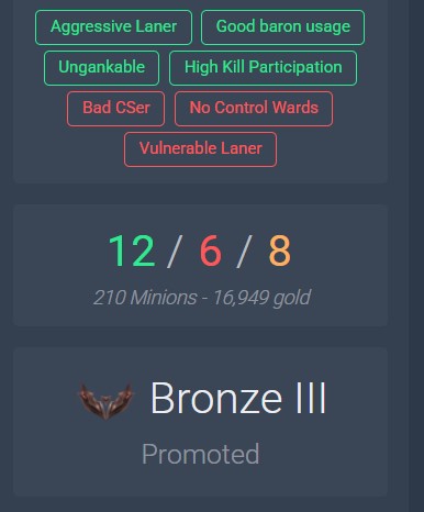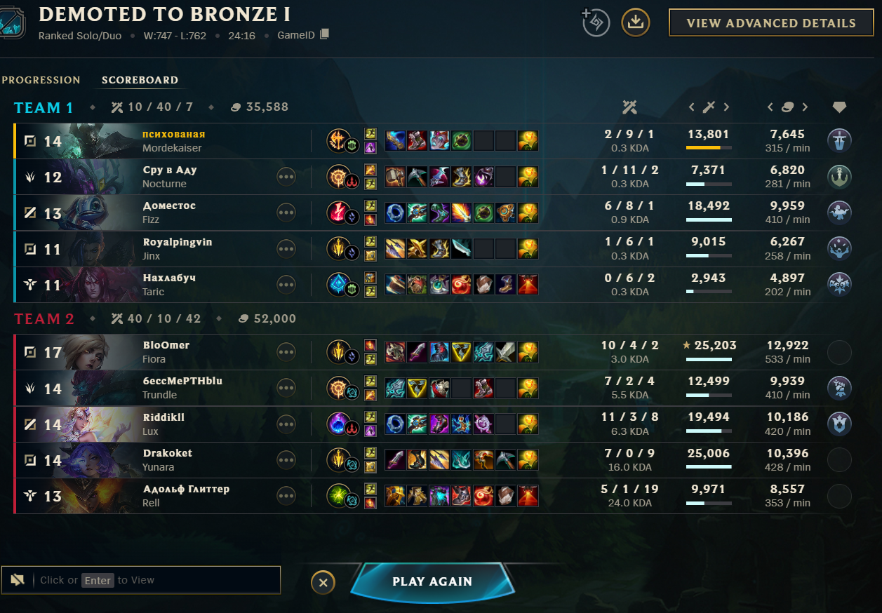 вылез из железа 4 0 лп, где торчал более полугода, в бронзу 2 (перестал тильтовать, становиться в афк, продавать вещи, бегать за лесником и стилить его кемпы, уходить на другую линию после первой смерти и тд). играть почему-то стало проще. игроки зачастую действуют еще тупее, чем на самом дне дна. я думал, хоть на 5%, но люди скилловее тут