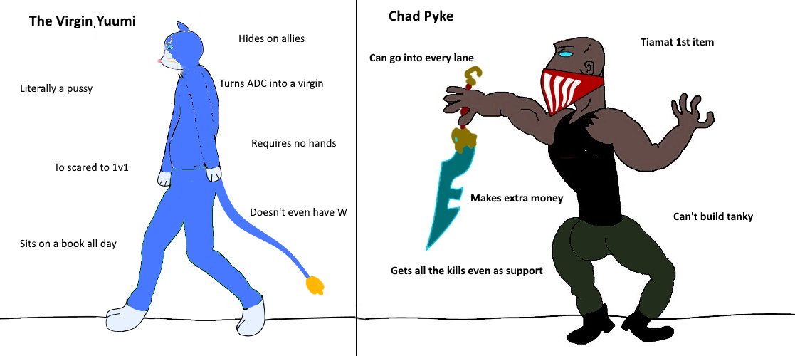 >>50078950 ты сам подметил, что у них преимущество по уровню. и по обжективам. плюс, давай сравним потенциал чемпионов при затянутой игре 1) чогат - просто танк. ничего не делает. мундо - бруизер-ебырь который может файтиться 1в5 2) белвет - просто норм дуэлист, но ничего в тимфайты, к которым сводится весь лейт гейм не привносит, ей нужно, чтобы кто-то зашел в драку и до половины хп опустил чемпионов, потом она залетает, убивает таргет, нажимает ульту, взрывает, да, уже какой-то импакт есть. только вот нюанс: залетать и дамажить НЕКОМУ. трандл - тоже норм дуэлист, но у него на тимфайт есть супер сильный спелл столб 3) векс - эрли-мид гейм мидер которая в лейте никто. энни - за стан ваншотится любой на любой стадии игры 4) люшиан - эрли-мид гейм адк. в лейте только царапает богов лейта вроде мундо, да даже энни скорее всего переживет сто его автоатак с ультой. гипер слабый в лейте адкерри. твич - один из лучших лейт гейм адк, единственная проблема которого, что ему тяжело убивать жирных бруизеров и танков, только вот когда танк чогат ты как бы его убивай не убивай он не делает особо ничего, то есть у твича в этот пик нет слабостей 5) пантеон - это даже не саппорт. чела просто филльнуло на сапа и он пикнул залупу которую пикают на любую позицию и билдил шмотки на урон. бард - уникальный саппорт каждый спелл которого может без шансов выиграть игру или спасти самый безнадежный тимфайт