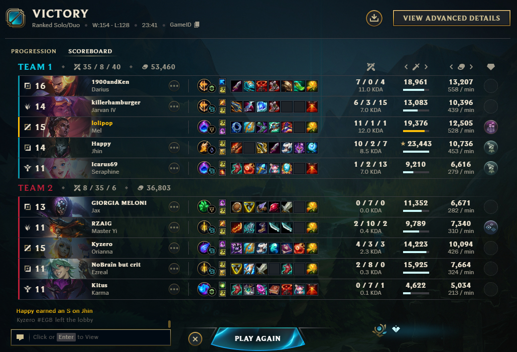 Твой анализ был бы очень хорош, если бы я не мог посмотреьт что у люцика в конце игры 60к урона, а у твича 28, что твою аналитику перекрывает чуть более чем полностью, на твоём эло любой чампик на любой стадии может быть суперимпактным, зависит от комфорта отдельного игрока.