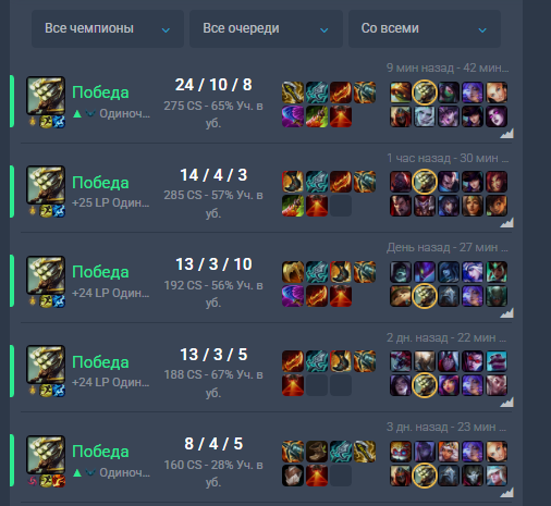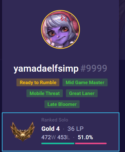 Если не дрочить по 20 ранкедов в день и есть год+ опыта в игре, то вполне себе норм игра. Арены весёлые, АРАМы тоже, щель призывателей 50/50. Главное взять персонажа, который нравится и кайфовать