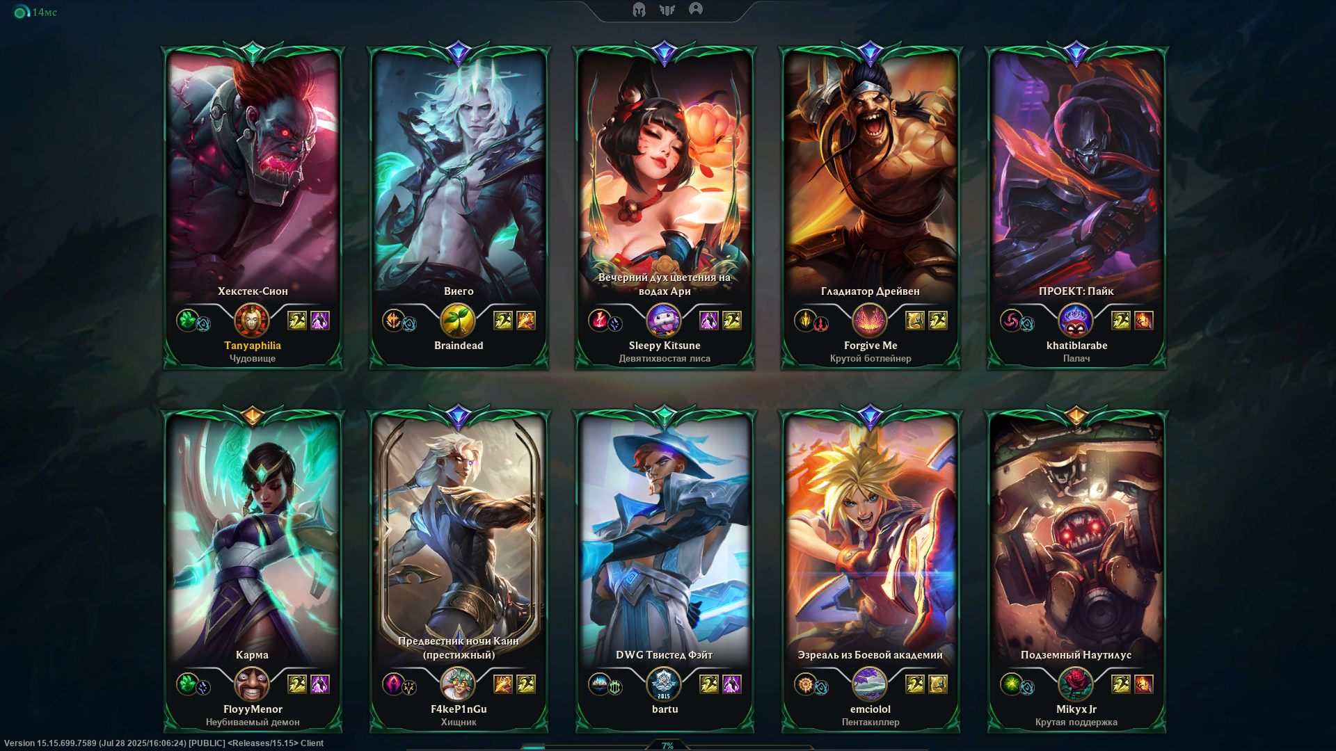 Пикаешь такой мф превым пиком. Что же пикнут остальные 9 игроков, м? Команду по изнасилованию мфки. Союзники: пайк джунгли, мел сапорт, ад мидер(киана), ад топер (джейс). Противники: катарина, раммус.