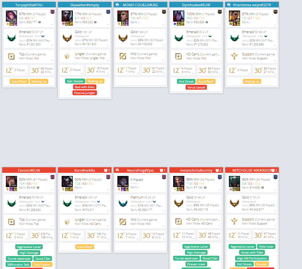 90%вр дуоботлейн на 30+ игр отп сетт с 60% вр против автофила на фиоре (простейший матчап его персонажа) олмост даймонд кейн в лесу против 17% вр экко калочемпик свейн против мейн контрпика.