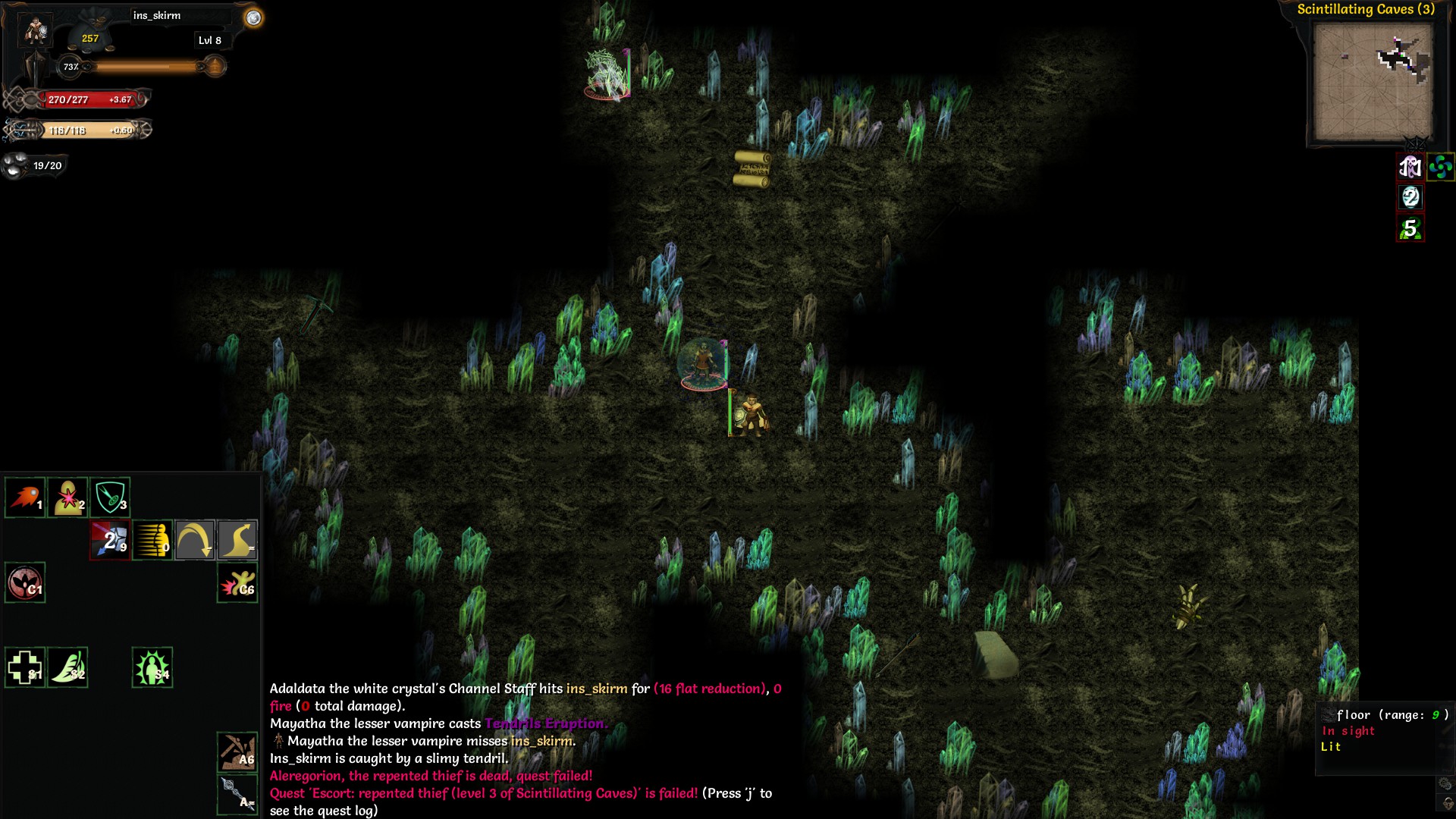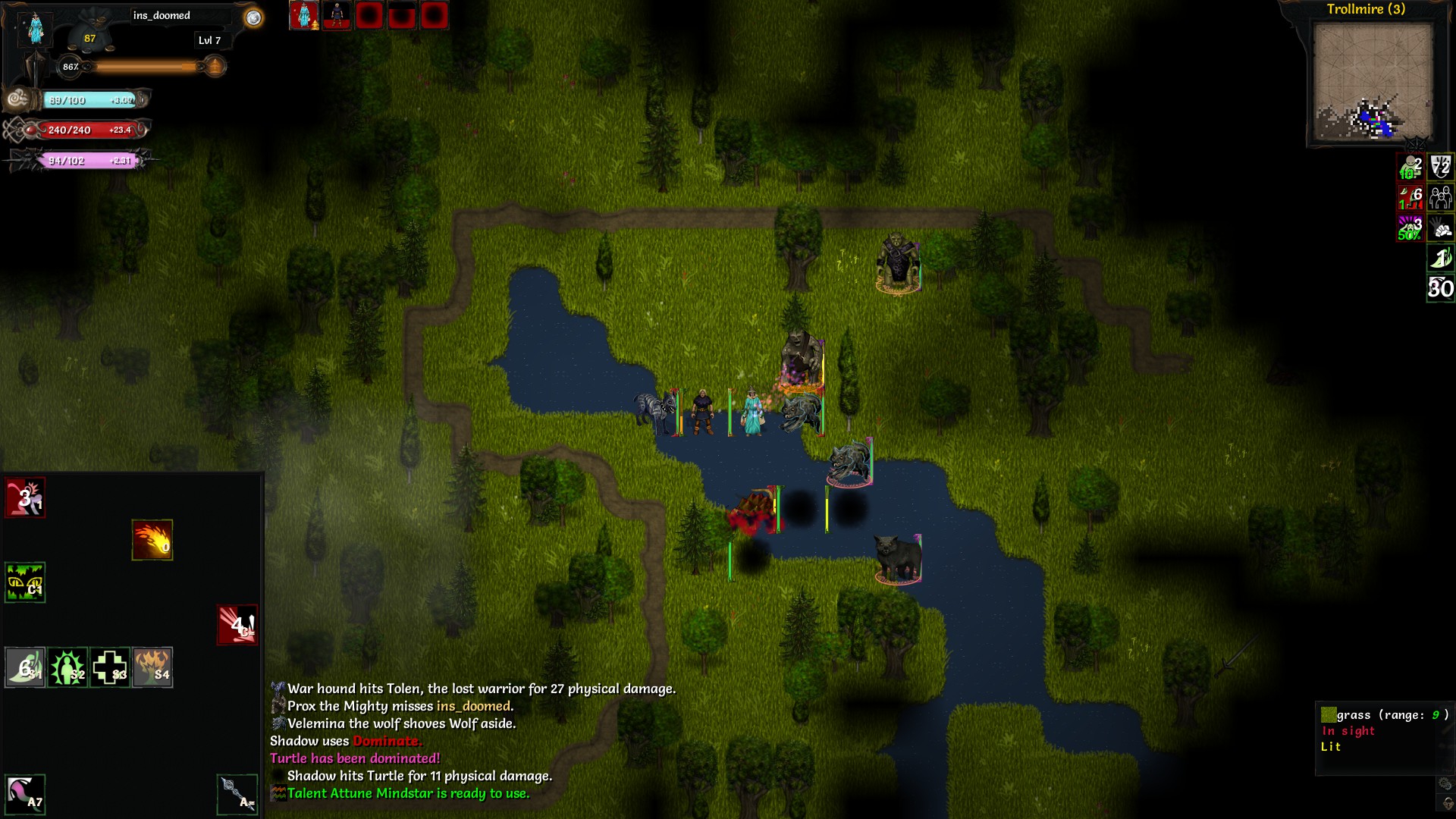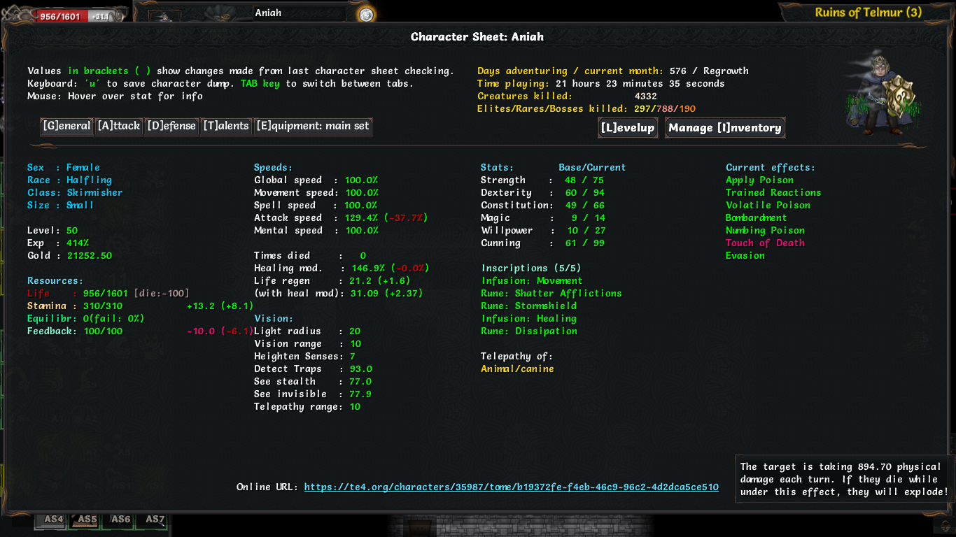 Через тени сложнее конечно. Короче, не качай их сразу прям. Сначала по 1-1-1-1, потом добавляй по чутка. Ты стоишь, пропускаешь ходы, тени стукают. Ну или убегаешь. Первым что максишь - щит. Играешь корнаком, у него кошкоочко свободное, можно сразув тени вложить. С другой стороны https://te4.org/wiki/Umbraphage вот это тоже апает, кажется его достаточно если найдешь для 5й тени. Я думцом просто играл - адепт, маста оф дизаста и вперде на мины.