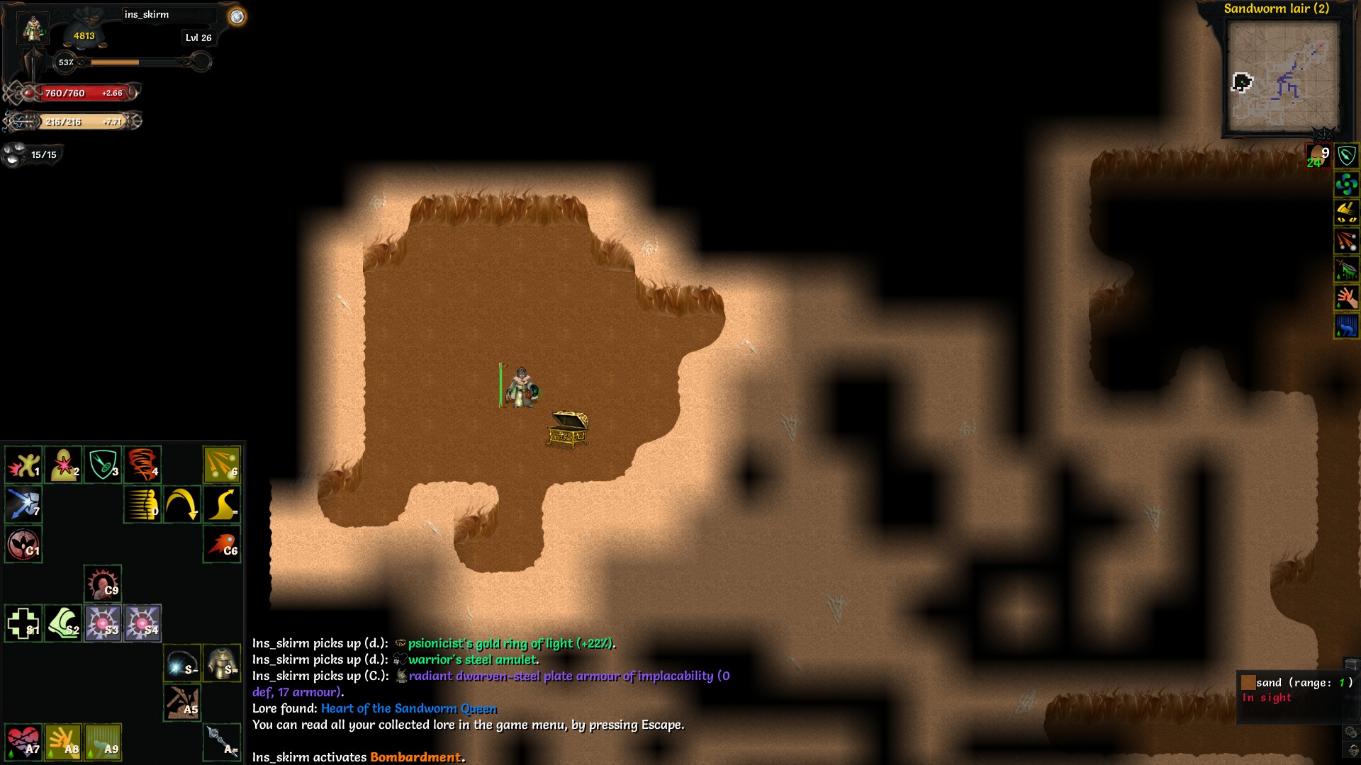 >>50075731 Поскольку я всегда хожу в крипту, то у меня свой маршрут, суть которого - накачаться как можно сильнее, проходя по карте как можно меньше, т.к. крипта прокает с шансом то ли 1% то ли 3% за клетку чёт такое. На 24.х уровен иду в лабиринт, после в анголу на уркиса - всего 2 шага пару раз прокало и за 1 шаг лул, оттуда в старолесье, озеро, крепость. С крепости либо иду в дередфелл, либо в дайкару - в этот раз успел в дайкару, а с неё на путив дредфел прокнула крипта, с крипты зашел в дредфел, прокачался сам понимаешь, пошел в гномью локу, зачистил, и уже тогда у меня прокнул червь. Там тоже какой-то шанс, какой не помню, с 30го уровня. Короче, меньше по карте ходи, 1 клетка - шанс на триггер.