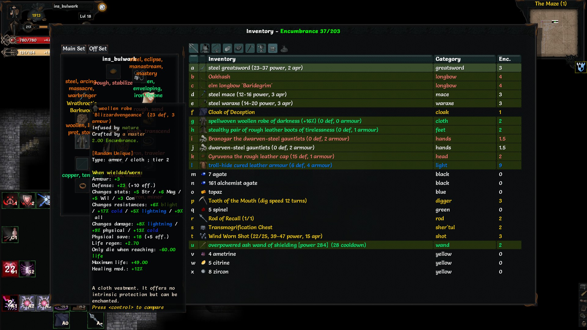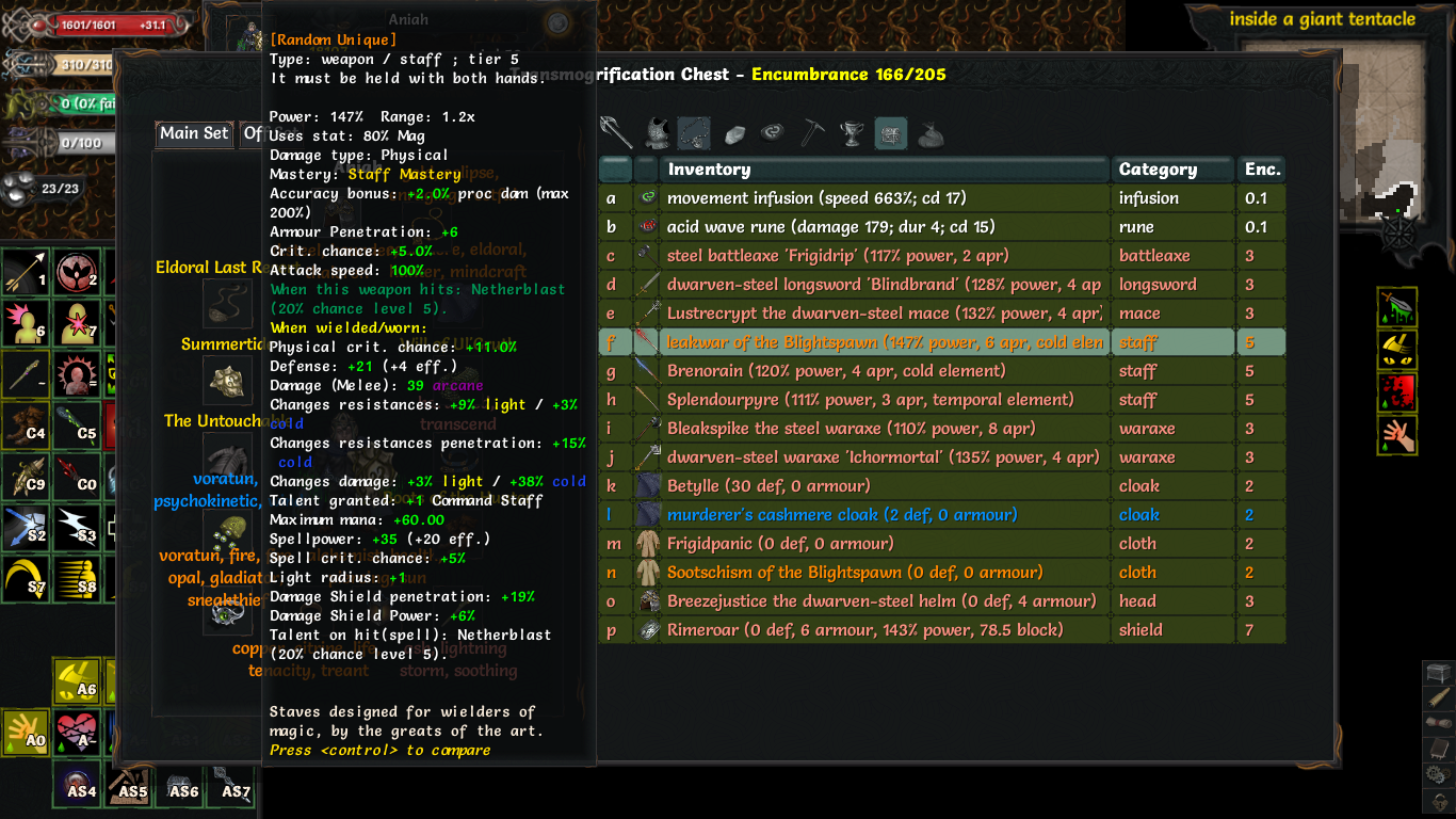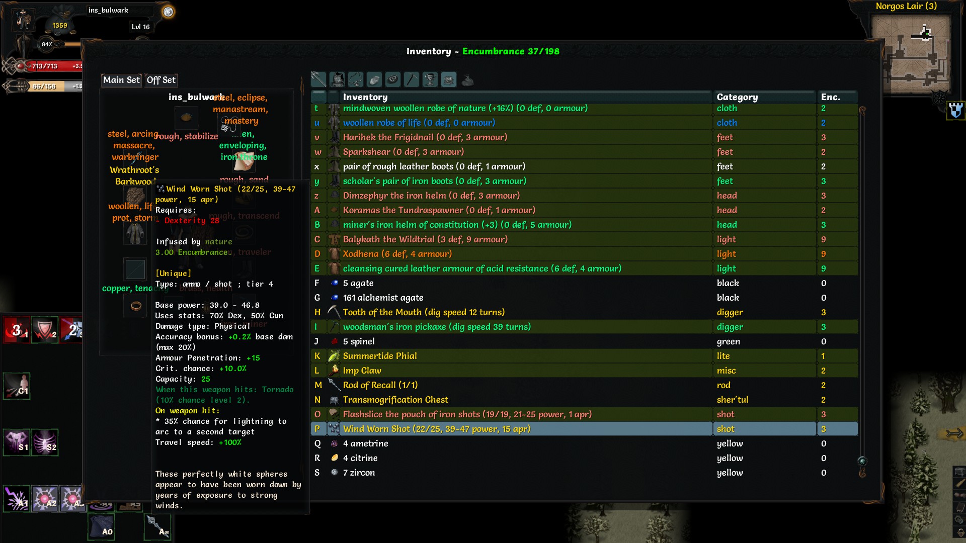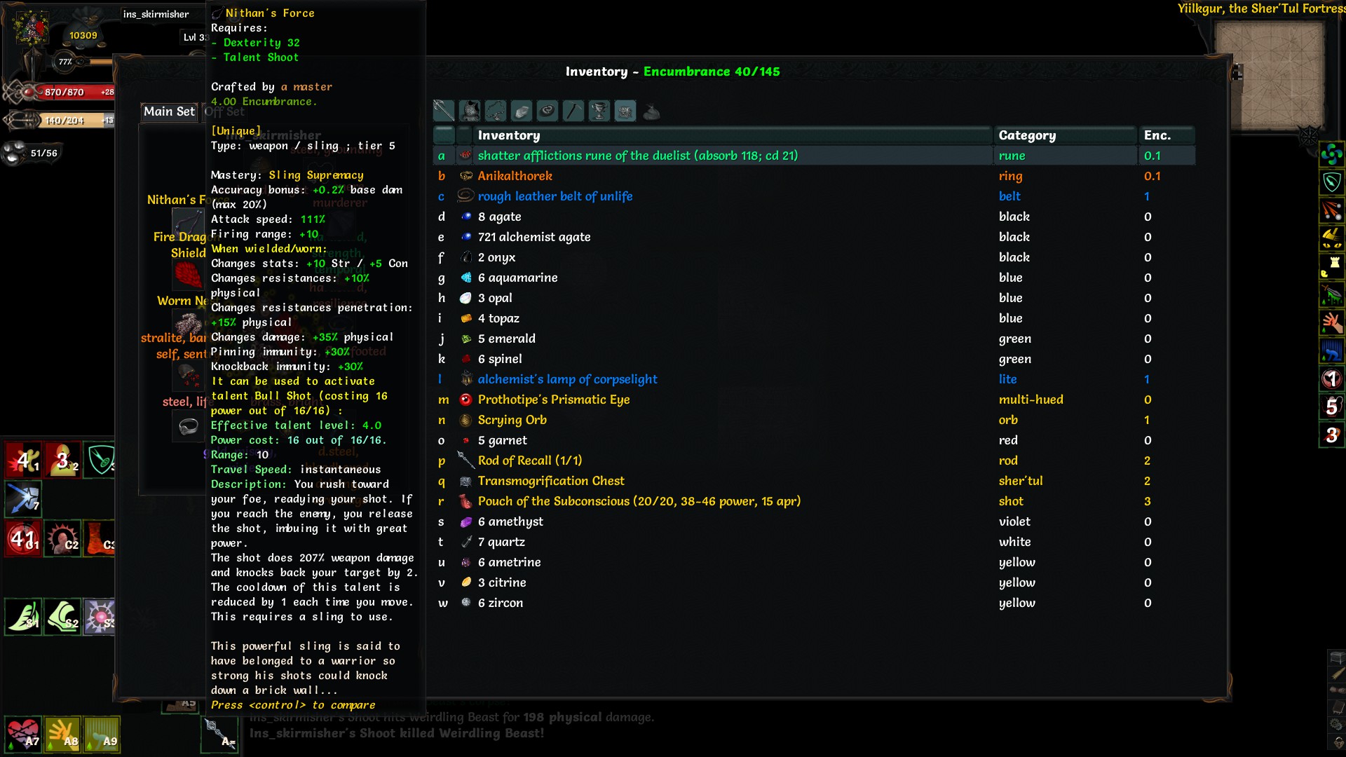 Физурона маловато, хотя червя без проблем прошел. Вообще, повезло найти Неприкасаемого и уник пращу 5го тира, как бишь её, эйдорал ласт резорт кажись. А так бы, наверное склеился в крипте.