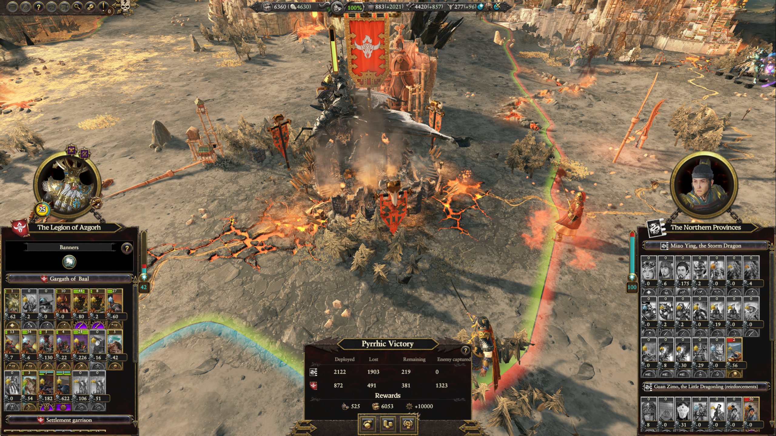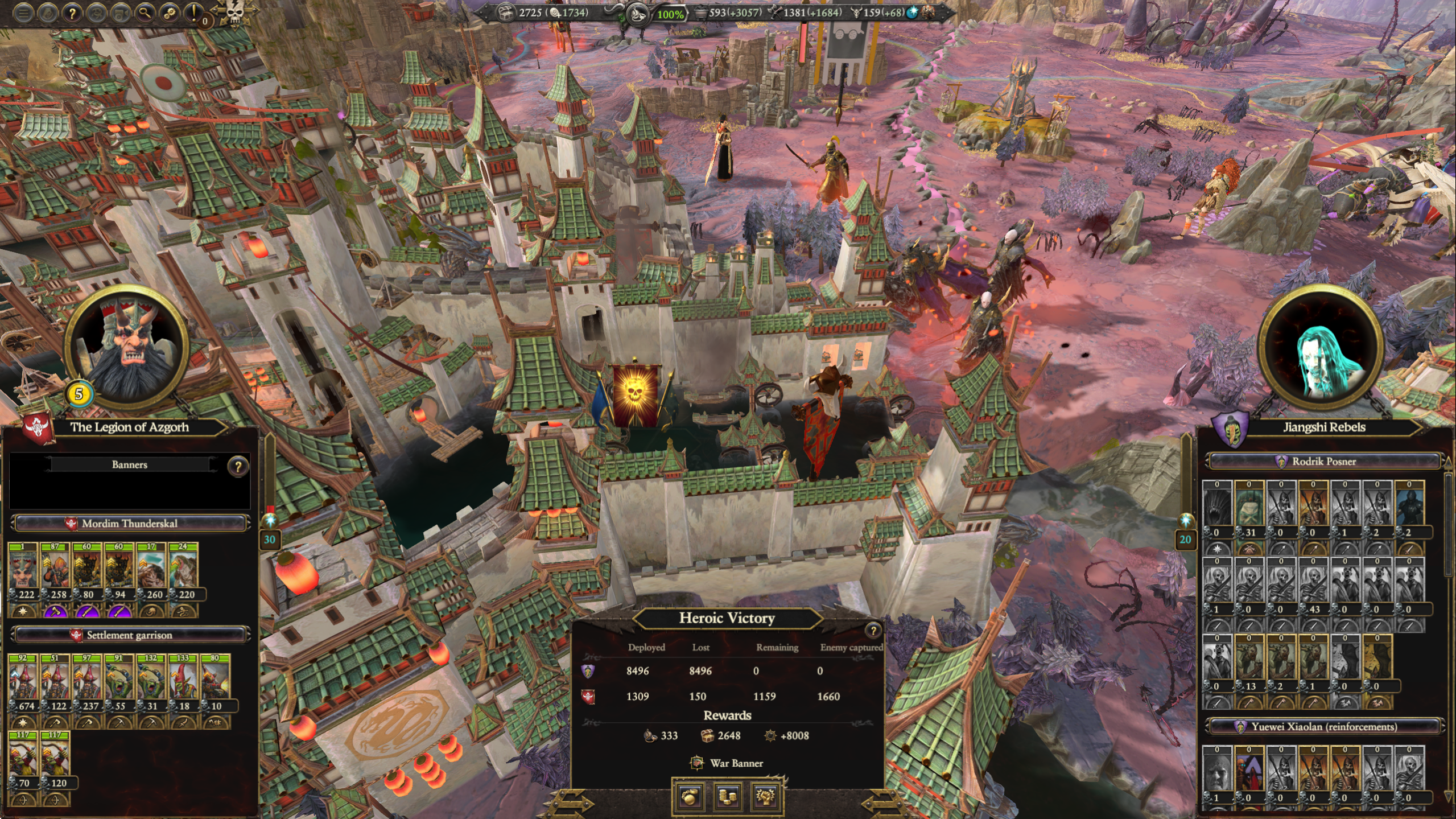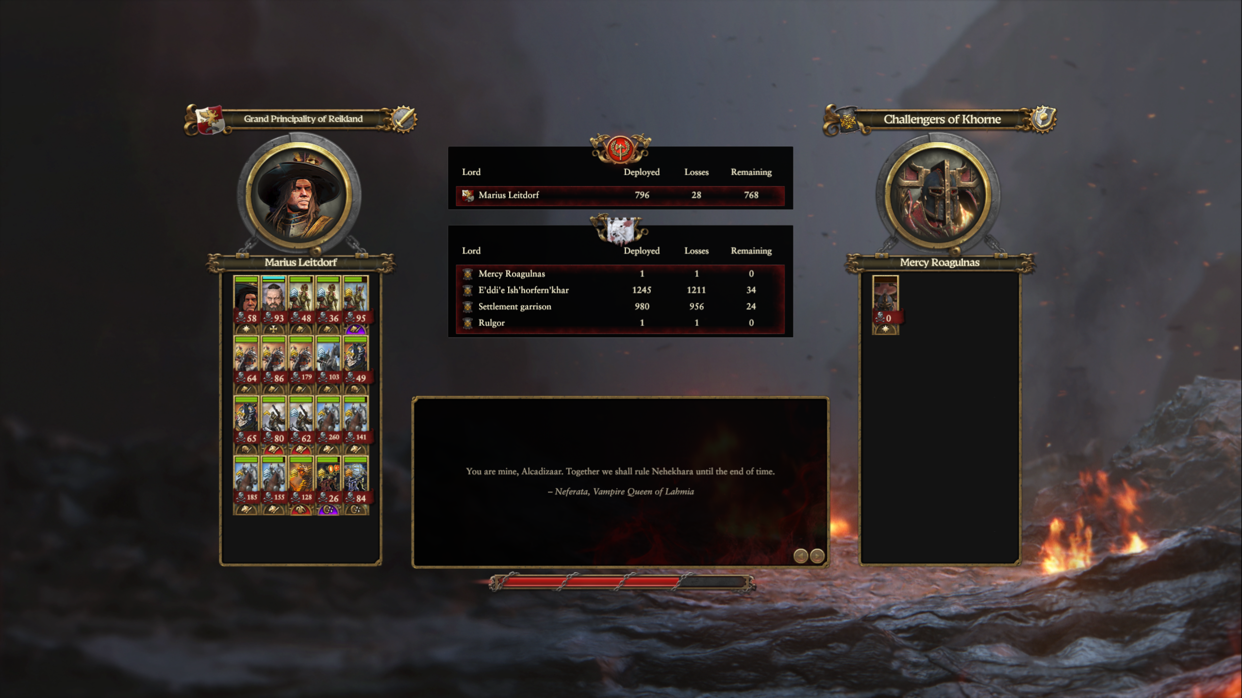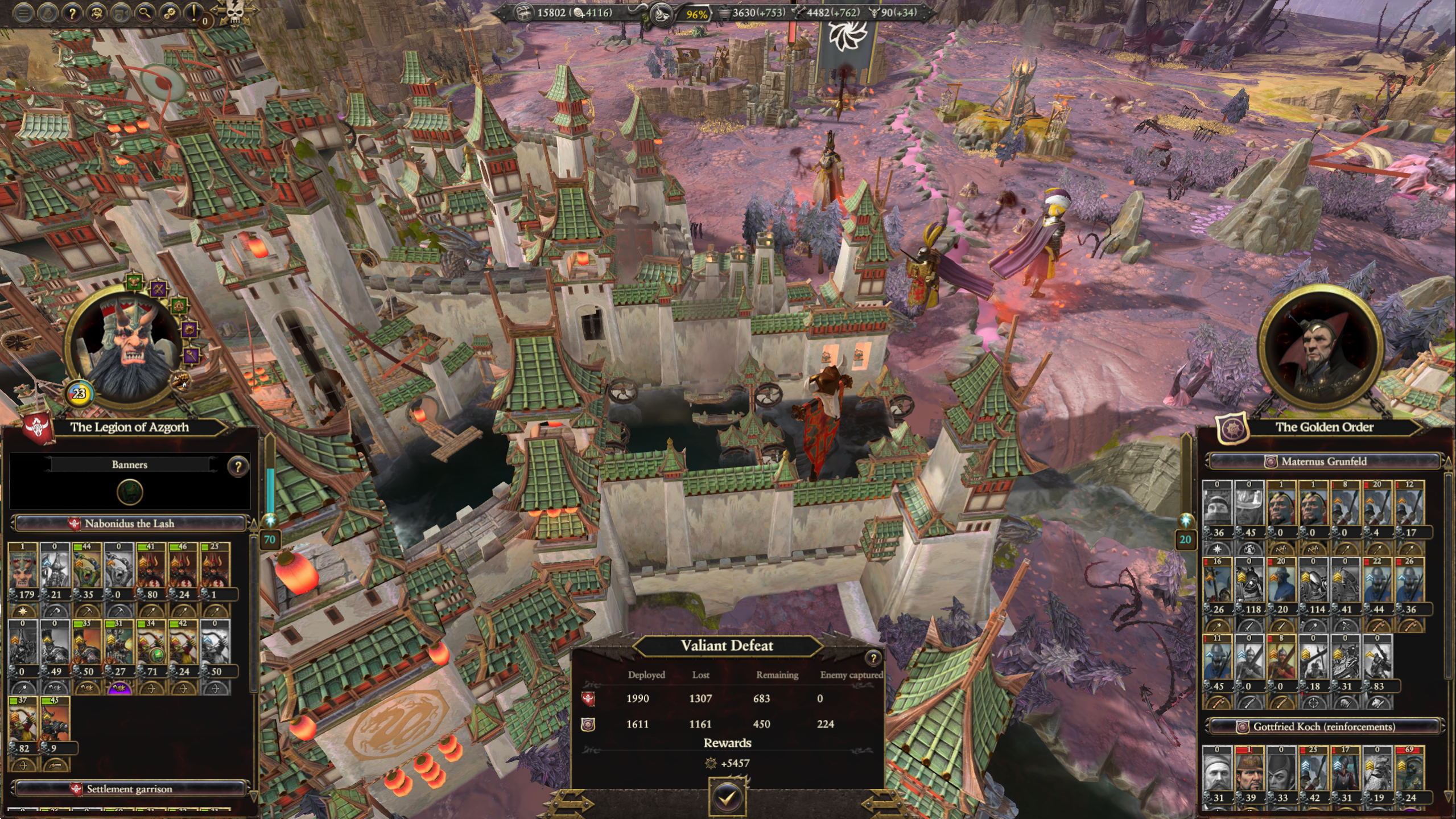 Я так как то вывез самую потную осаду в своей жизни, потому что на одних воротах устроил лютый роадблок где его ылитная конница в конечном счёте не смогла пробиться через туши кланрэтов и была постепенно вырезана единственным достойным отрядов в этом гарнизоне говна. А паладинов и Альберика найраннеры говном закидали, кек.