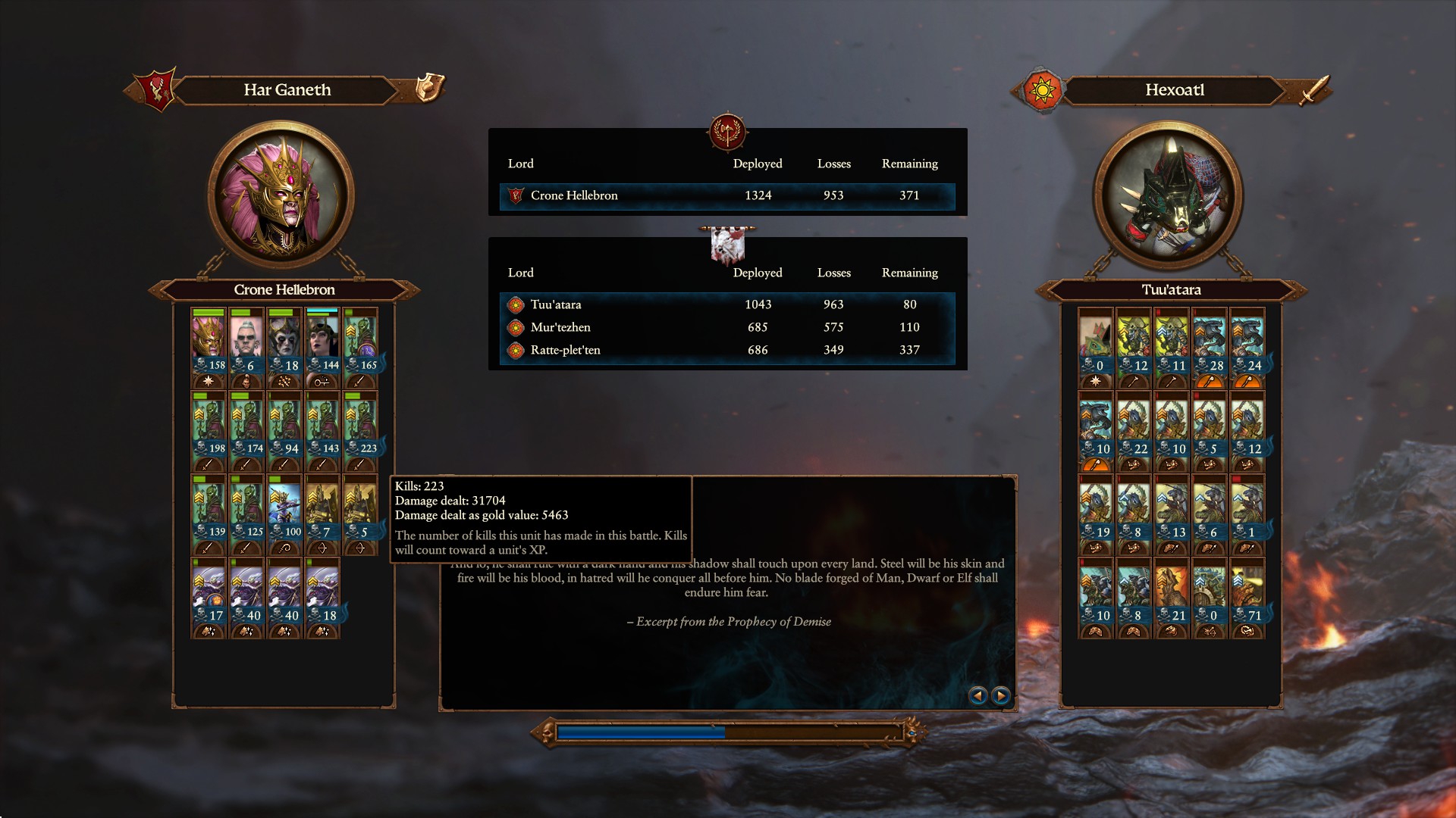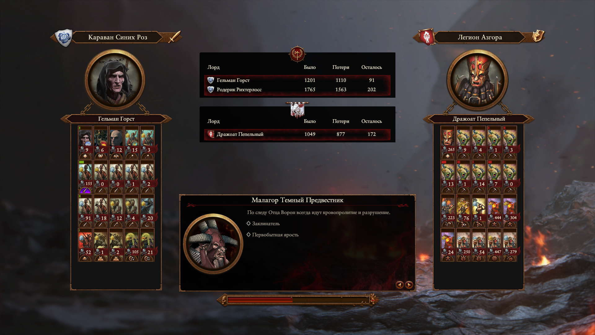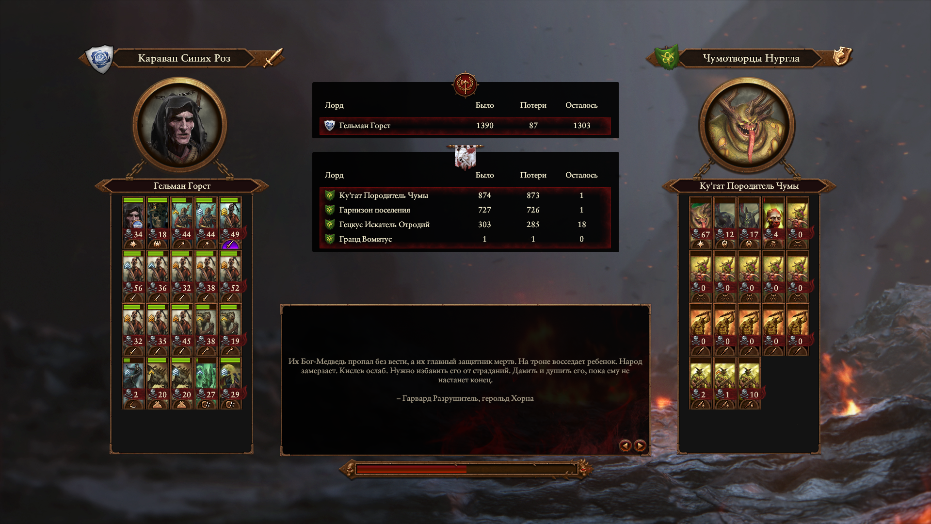>>50074654 >>50074660 Я почти уверен, что главной ошибкой было все таки не наспавнить в начале игры 3-4 лордов и заставить их следовать за LL заспавнил только одного. Даже хорошая экономика не вытягивает содержание армий без клятв 3 уровня. Я могу нанять лорда 13 уровня с одной клятвой, но обычные рыцари мрут стабильно + нехватка летающих юнитов не дает контрить тзинчитских лордов и их фламеры летуны и скримеры. Где взять столько опыта, чтобы было несколько армий 8-9 ранга. У меня хорошо, если две - LL и первый нанятый дженерик лорд. До этого проходил компанию Луана и Альберика до Скаллтейкера, скорее всего мне везло, что не встречал по настоящему раскачанного И Кстати, до этого проходил компанию Скарбранда. У меня также Сеттра раскачался. Я в какой-то момент просто заебался убивать нескончаемые стаки, их было прям дохуя. Дропнул в итоге, т. к. надоело.