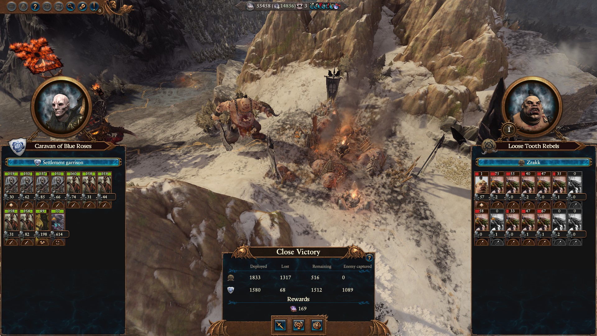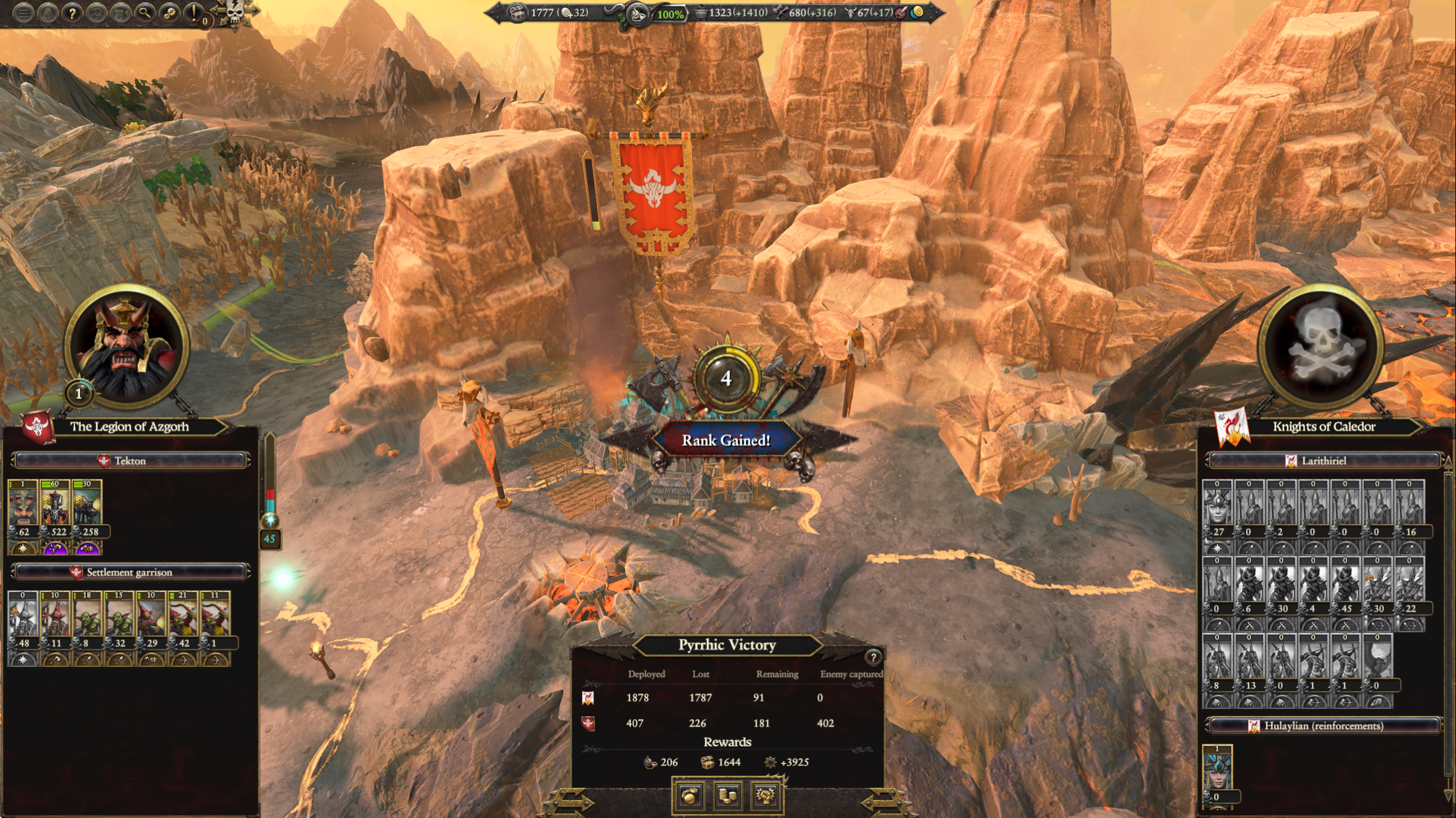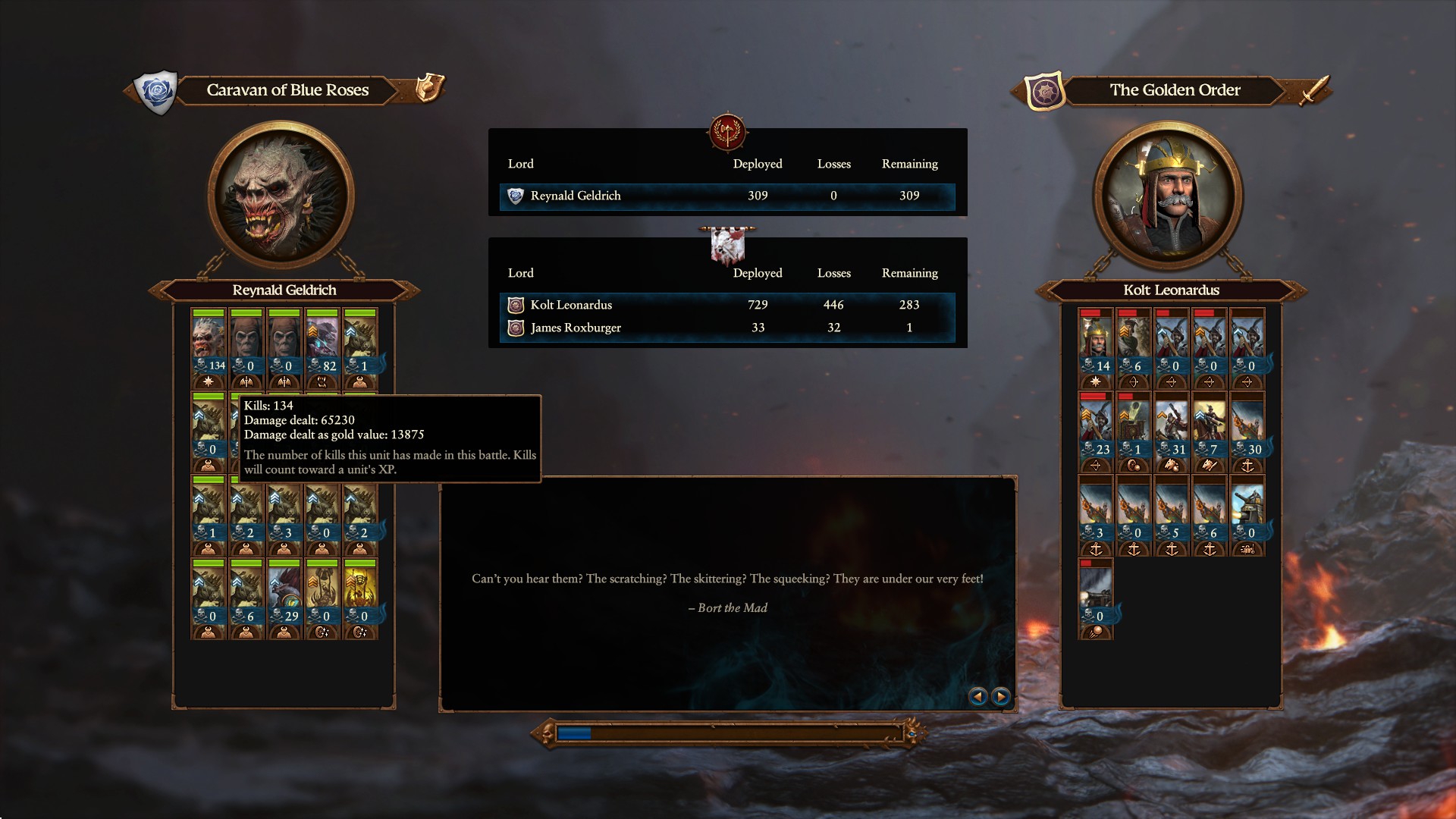 Правда сначала они продавили вторые ворота и всех кто там был и несколько отрядов встали на захват главной площади. В итоге мои крысы с выстоявших ворот добежали до последнего паладина и была буквально гонка, смогут ли постоянно убегающие и возвращающиеся крысюки отпиздить бретонского паладина до того как у нас возьмут город. И смогли ведь, падлы буквально на 95% захвата, он побежал и останки их отрядов поймали арми лосс. А потом мы его еще затыкали на выходе из города. В общем ахуенно было.