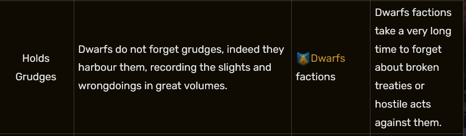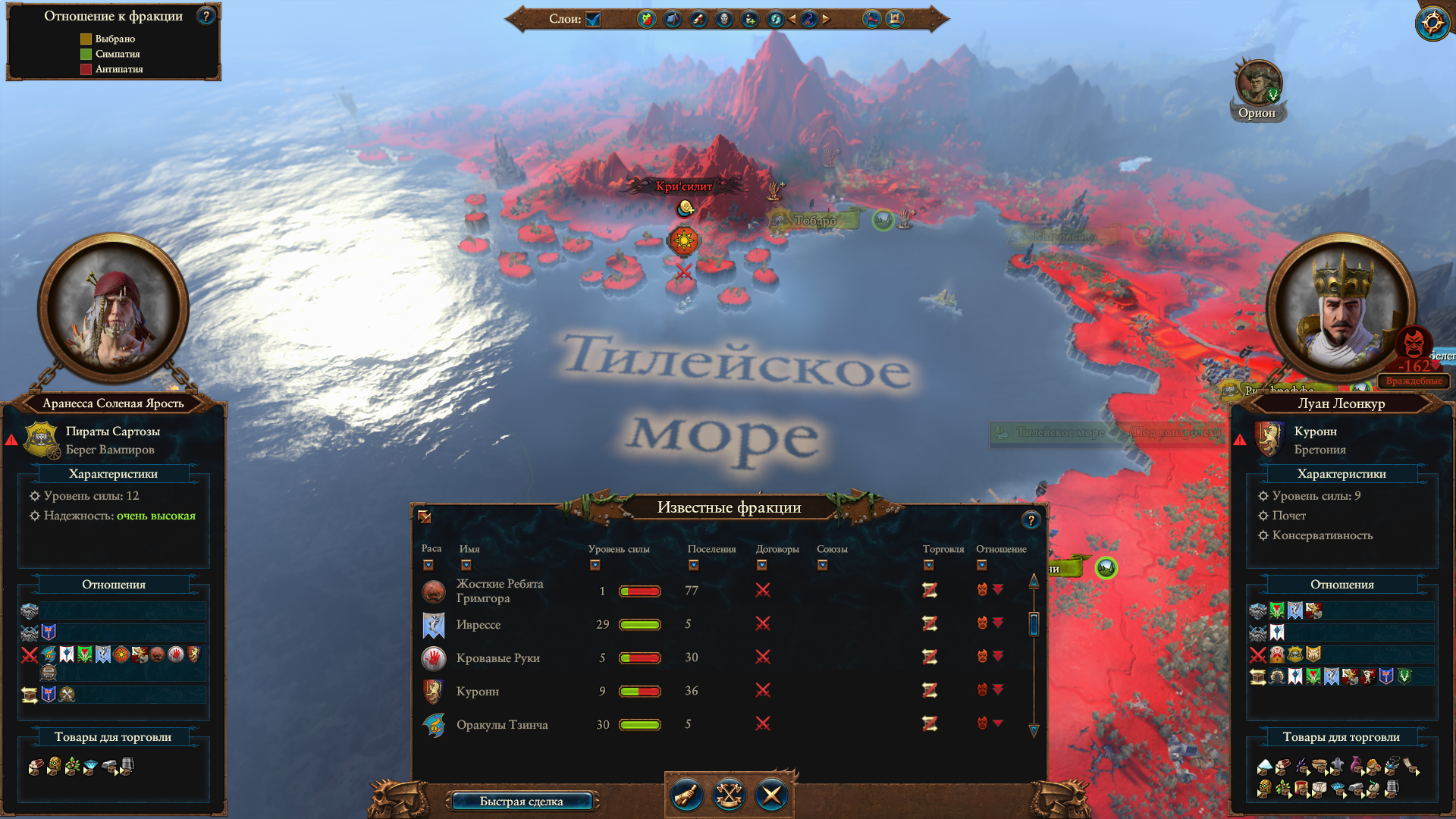 >>50065650 > ход назад помирился с арбаалом, которого я отпиздил чтоб он на меня не напал Вот это часто бывает, что фрака, с которой ты помирился, снова кидает тебе войну. Иногда даже в пределах тех же 10 ходов (ИИ похер на рейтинг надёжности). А ты ещё и расовый враг для него скорее всего. >Потом чорф который угрозы не представлял Эти оппортунисты. Любят атаковать незащищенные провки, если рядом нет твоей сильной армии, которая может выдать им пизды. >И все, мне войну кидает ажаг топ 1, который со мной не соприкасается и пиздит там дворфов Тут немного странно, но в принципе для орка с их трейтами на агрессивность и топ-1 рейтинга ничего особенно удивительного нет. >и демоны, которых я не видел даже еще Эти за Архаона вписались ясен пень, и им там воевать не с кем. Это проблема той части карты, если она вся хаоситская, то они там все между собой пакты подписывают и сидят-пердят в своих провках без войн\почти без войн. Поэтому появление игрока, тем более из расы порядка, почти гарантированно спровоцирует войны.