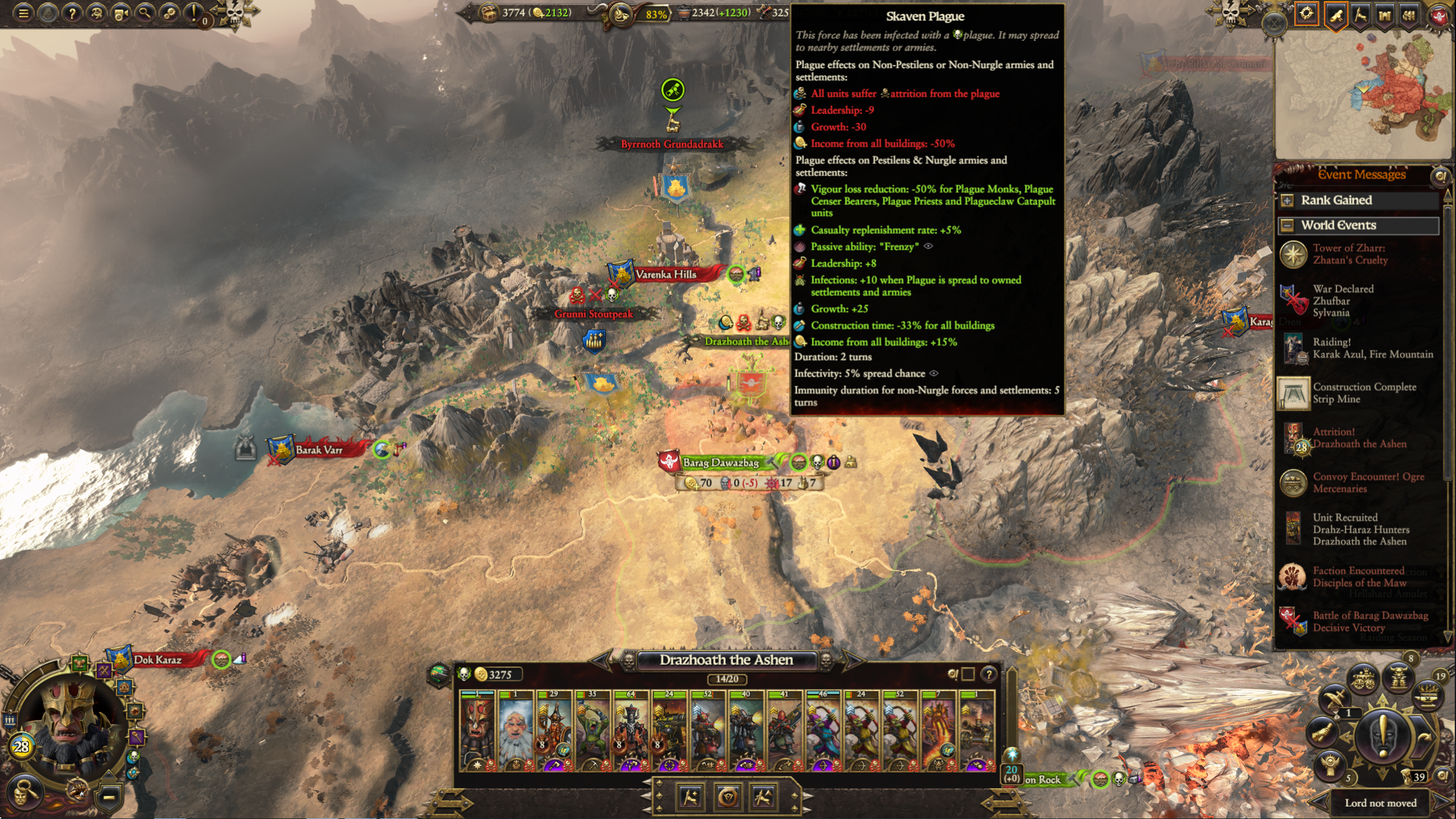 Бля, это норма? Клан Риктус на 160ом ходу на 5 избушках стоит в 11 армий 3-4 тира. И я демонами прихожу в 7 армий из 95 городов, которые максимум могут содержать 10 армий. У меня что-то жопа горит с этих крыс. Особенно, что они каждый ход срут подземными ходами в городах, даже союзные скавены.