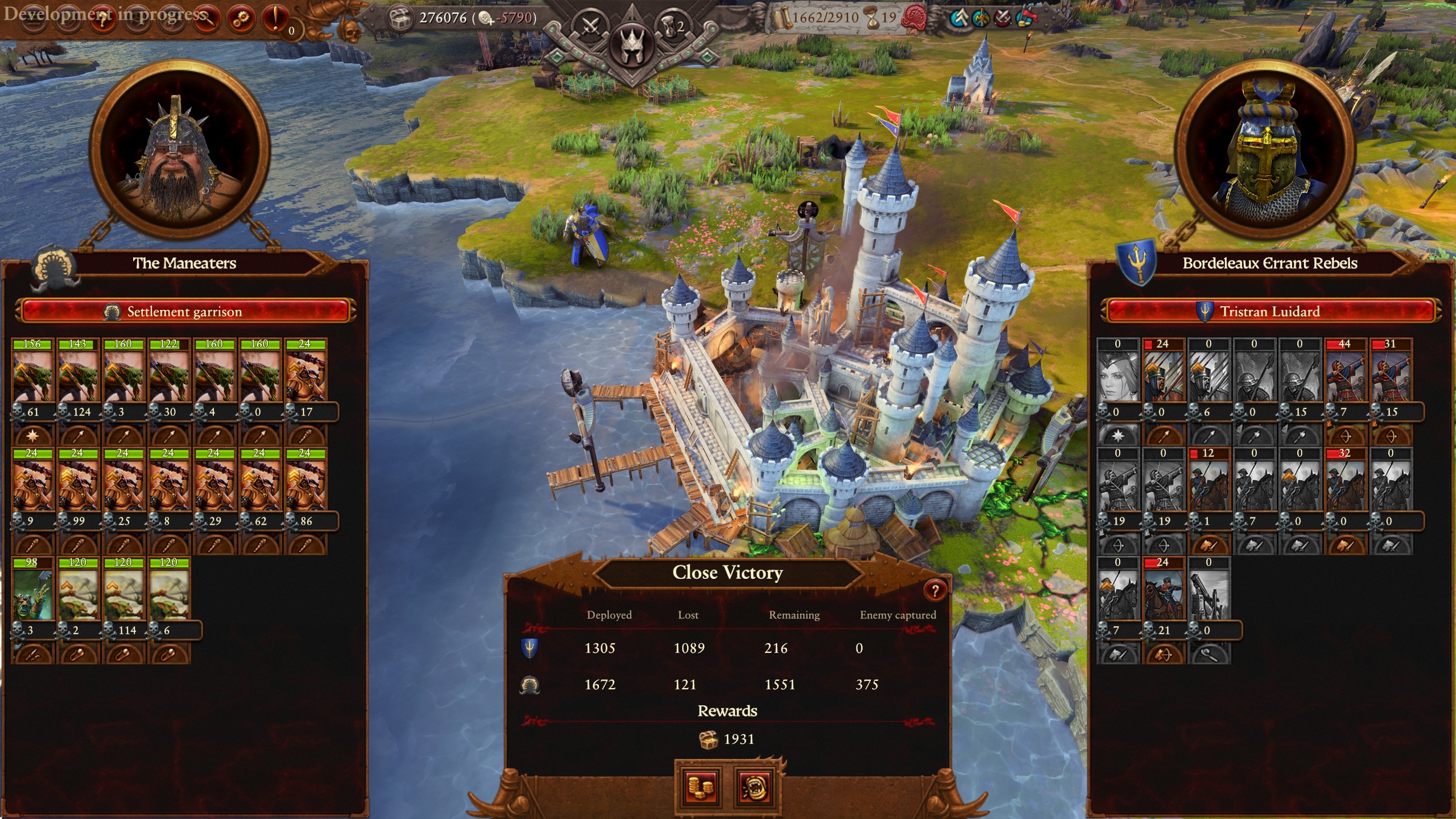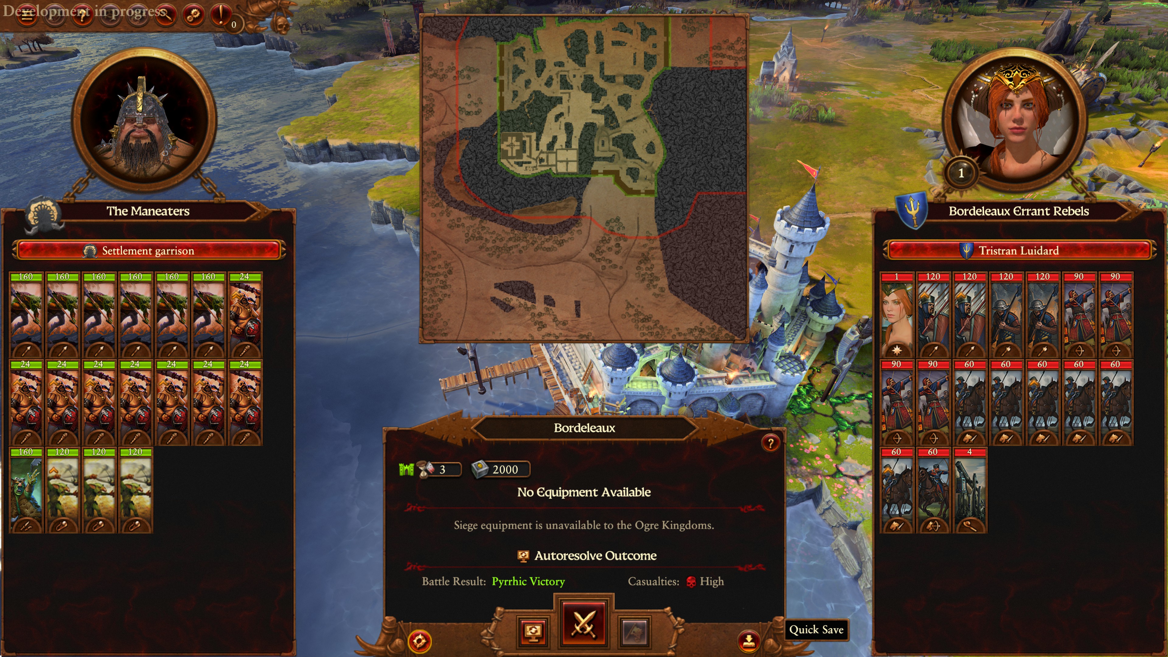 > Last, but not least, we understand that sometimes a lot of us just want to keep painting the campaign map in our chosen colour and not waste time with sieges or battles in general, so we are already hard at work at polishing out (with the heavy use of hammers and axes) that Auto Resolver and making it function properly….