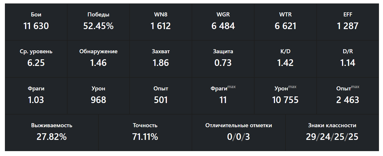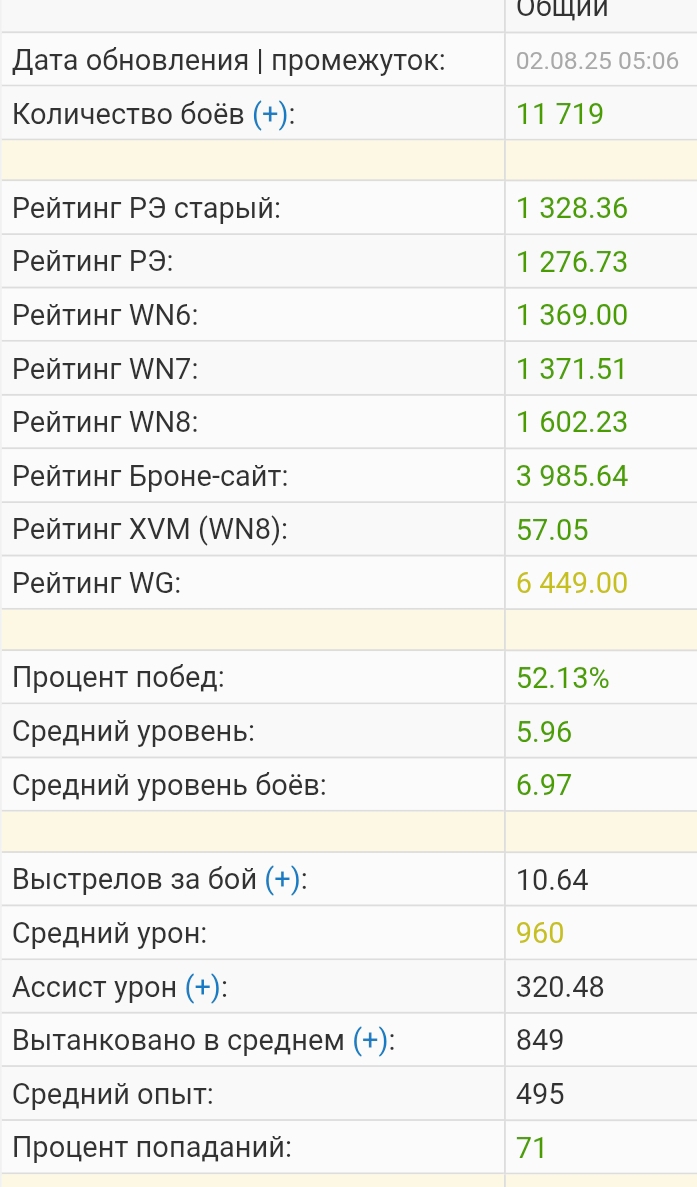 >>50076269 Да нормально, в принципе чуть выше чем рандомный Леха. 6 к ммр это как правило отбитое хп. Пойдет. Хотя если ты ты сыграешь ещё где-то 5 к боёв. Может и выйдет на нормальные значения. Хотя опять же, имхо ммр смотрят чаще. Потому что игроков с хвмом в игре всего пара человек в бою. И твою стату все увидят только постфактум. Да и как правило, у всех это будет вызывать смешанные чувства. Хотя хорошо играть ты научишься уже потом. Рано или поздно научишься.