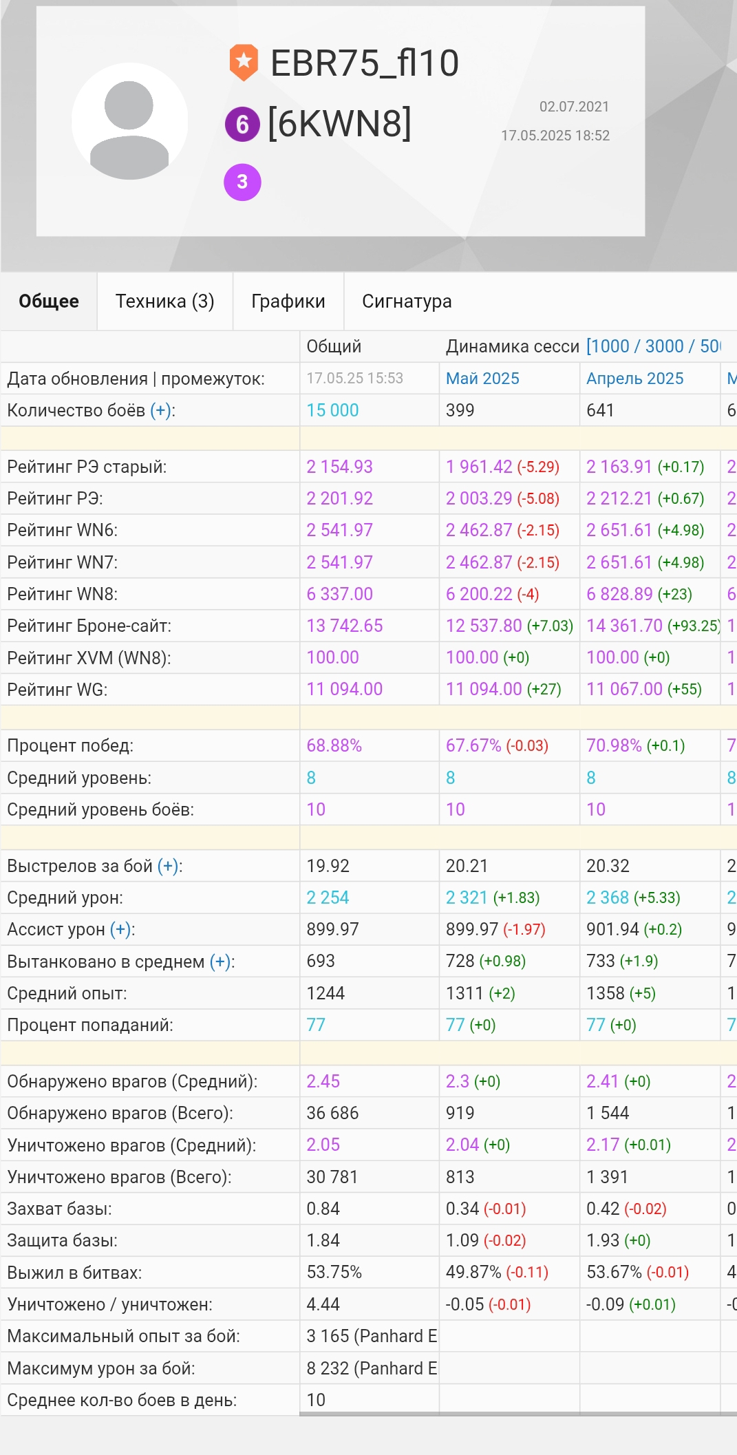 кстати слить вн8 +4000 будет тяжелее чем поднять так как количество боев будет +20к а от боя с 2000-3000 вн8 на Х лвл даже в количестве 10 или 100 капля в море примерно 0,001 очков вн8