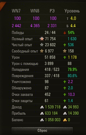 Балансировочный коэффициент — это индивидуальный коэффициент доходности, разный у всех танков. По окончании боя общее число кредитов, полученное в результате всех вышеперечисленных действий, умножается на этот коэффициент.