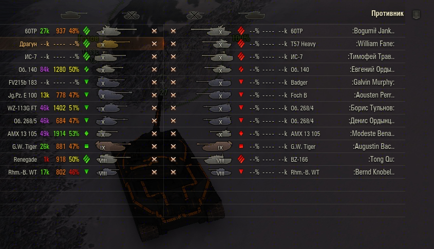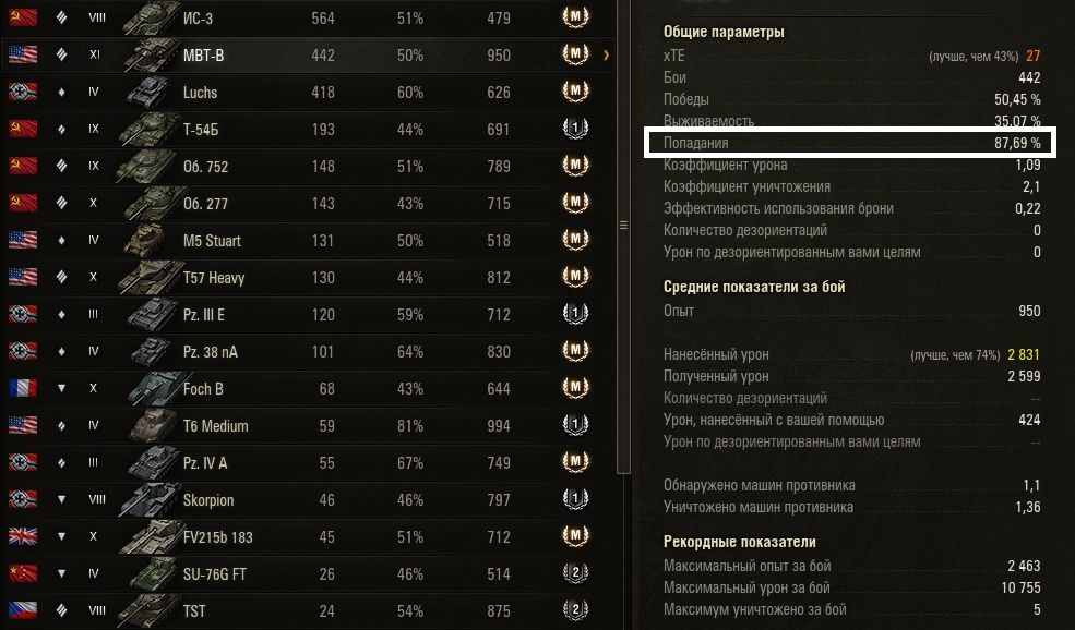 >>50073627 >Если при встрече со мной на одном фланге глядя на мой +4000 вн8 будешь ссаться кипятком от меня. Но ведь большинство настраивают ХВМ на танк на котором ты играешь в бою, а там ты моча.