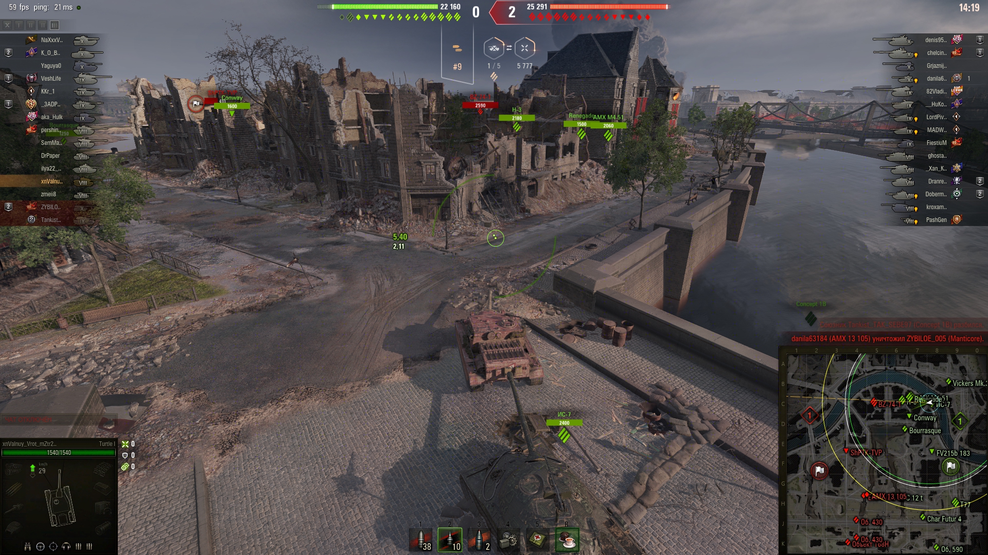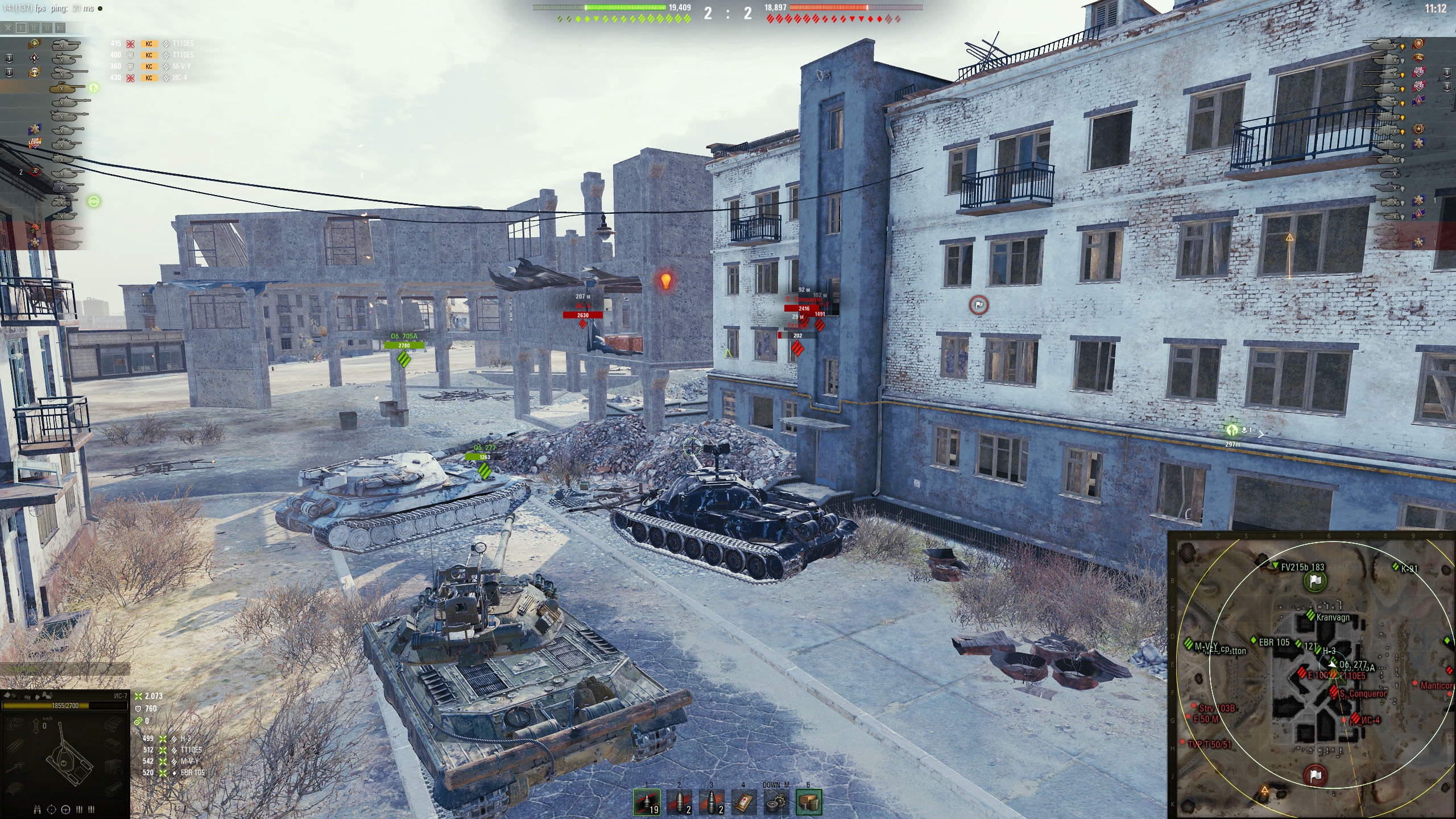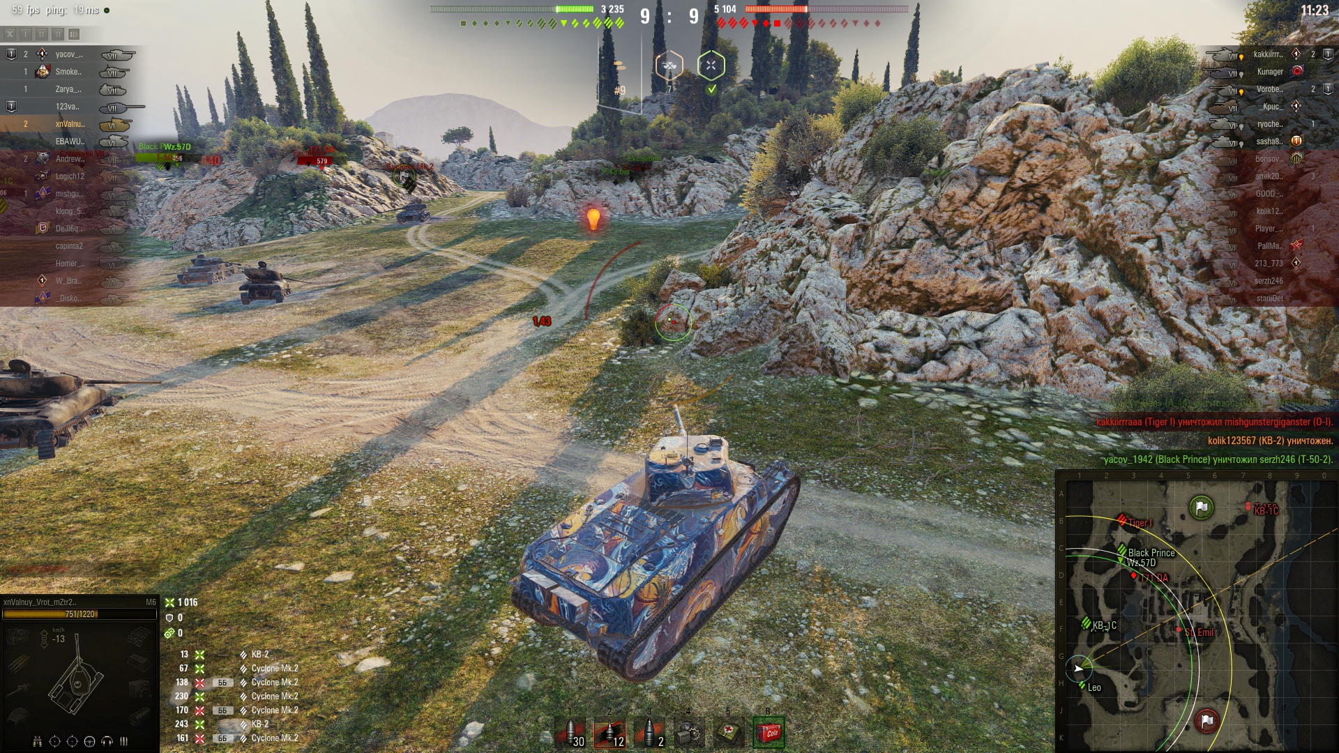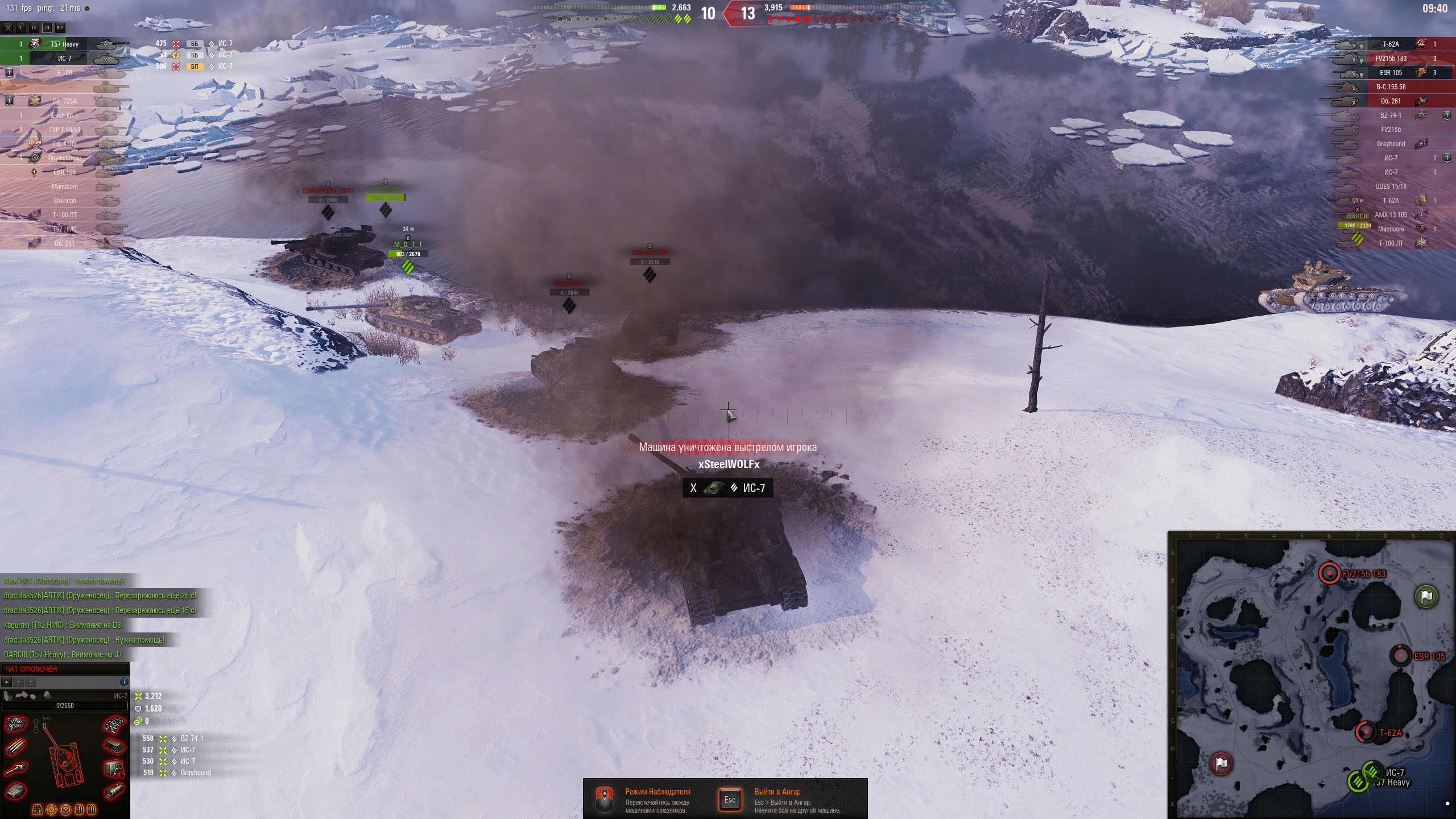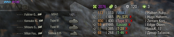 Когда-то я в КБ, оставшись последним на Химках с фуловым Львом, завалил почти всю команду противника, сидевшую на ИС-3. Прямо пять фрагов подряд. Но меня убил недобитый французский светляк (не проперло подстрелить на проезде, а в финальной дуэли ствол довернул дальше нужного, опасаясь не успеть. Перезарядка прошла раньше, чем у врага, так что мог и зарешать.)
