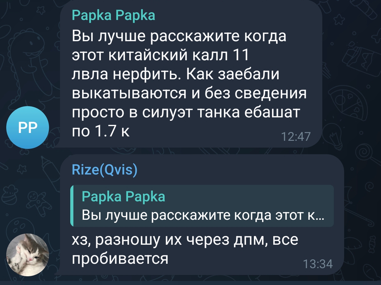Короче, скатал боёв 30 сегодня. Почти все на Тигре 2. Хочу кое-что сказать про новую точность. Прям кайфанул, местами такие вертухи получалось давай, что аж сам офигевал. Местами даже возникло ощущение, что НУБКА ВСЬО, всякие лючки стало в разы легче выцеливать. Особо показательный был пример на Линии Зикфрида. Встал в стандартную нубку под насыпью. Против меня был статист на к2. Когда я пару раз подряд пробил его в скос крыши башни у него случился BSOD, и дальше я в этот же скос добивал его афкшного. В общем как будто темп боёв возрос чисто за счёт того, что стоять на стандартных позициях теперь сложнее. По крайней мере для всякой башнепиздоты.