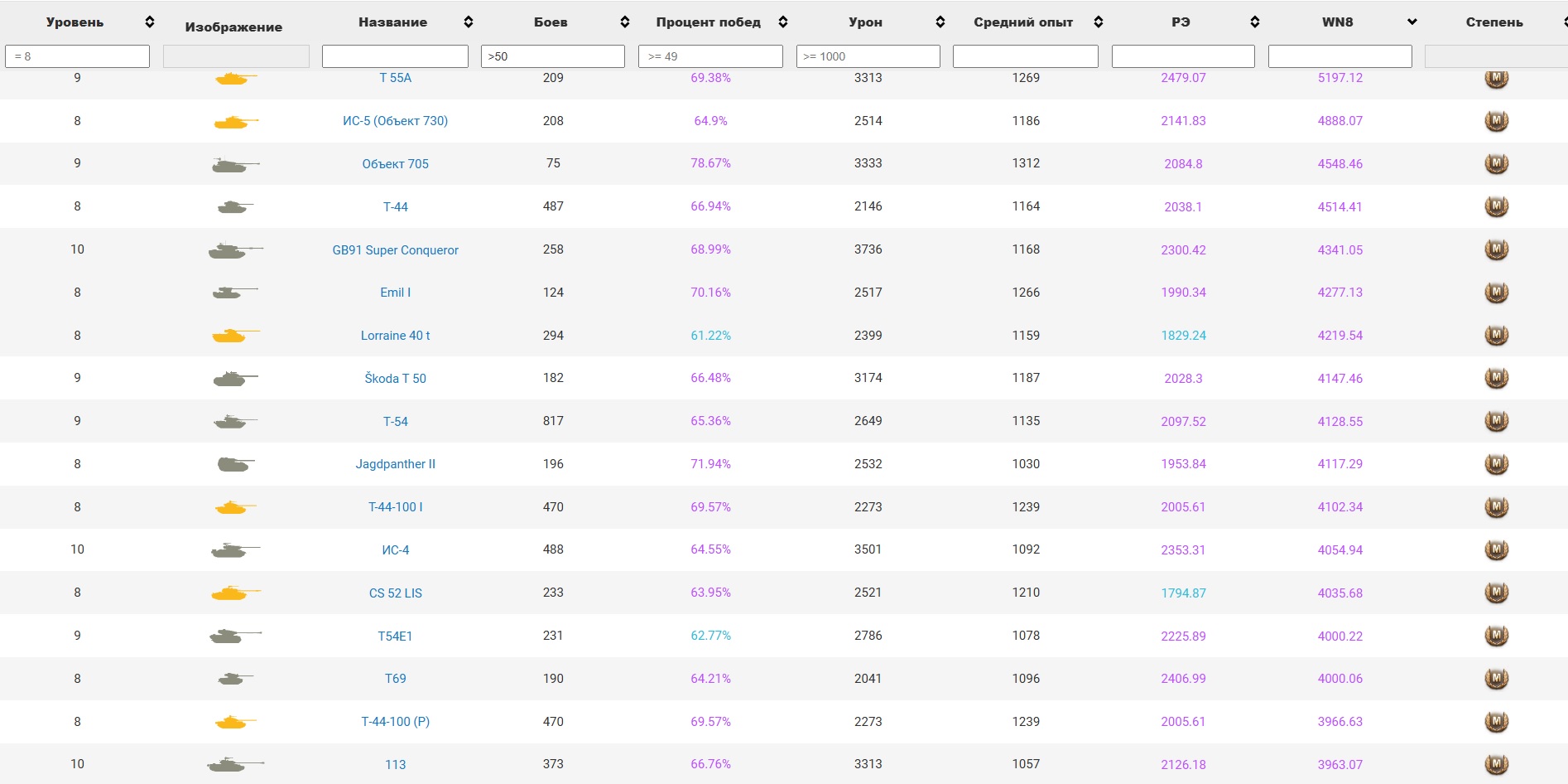 >>50087730 Да хоть 12, если бы скил измерялся уровнем вн8 бы не учитывал тупо песочные танки как неактуальную дрочь но почему то учитывает. В процентах урон наносимый одинаковый на всех уровнях.