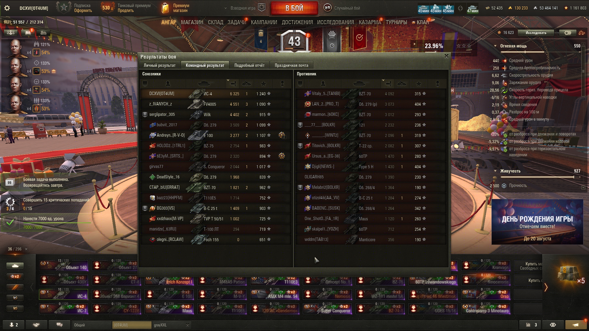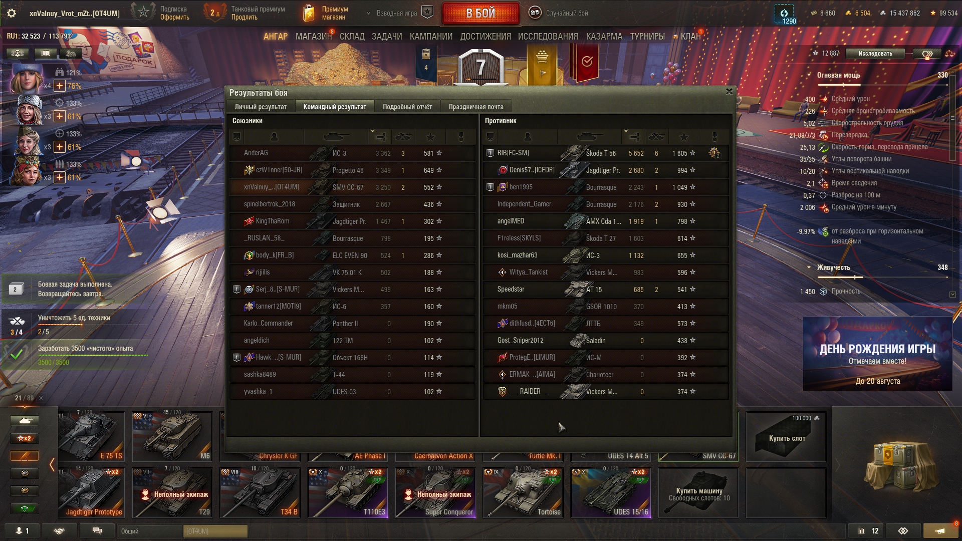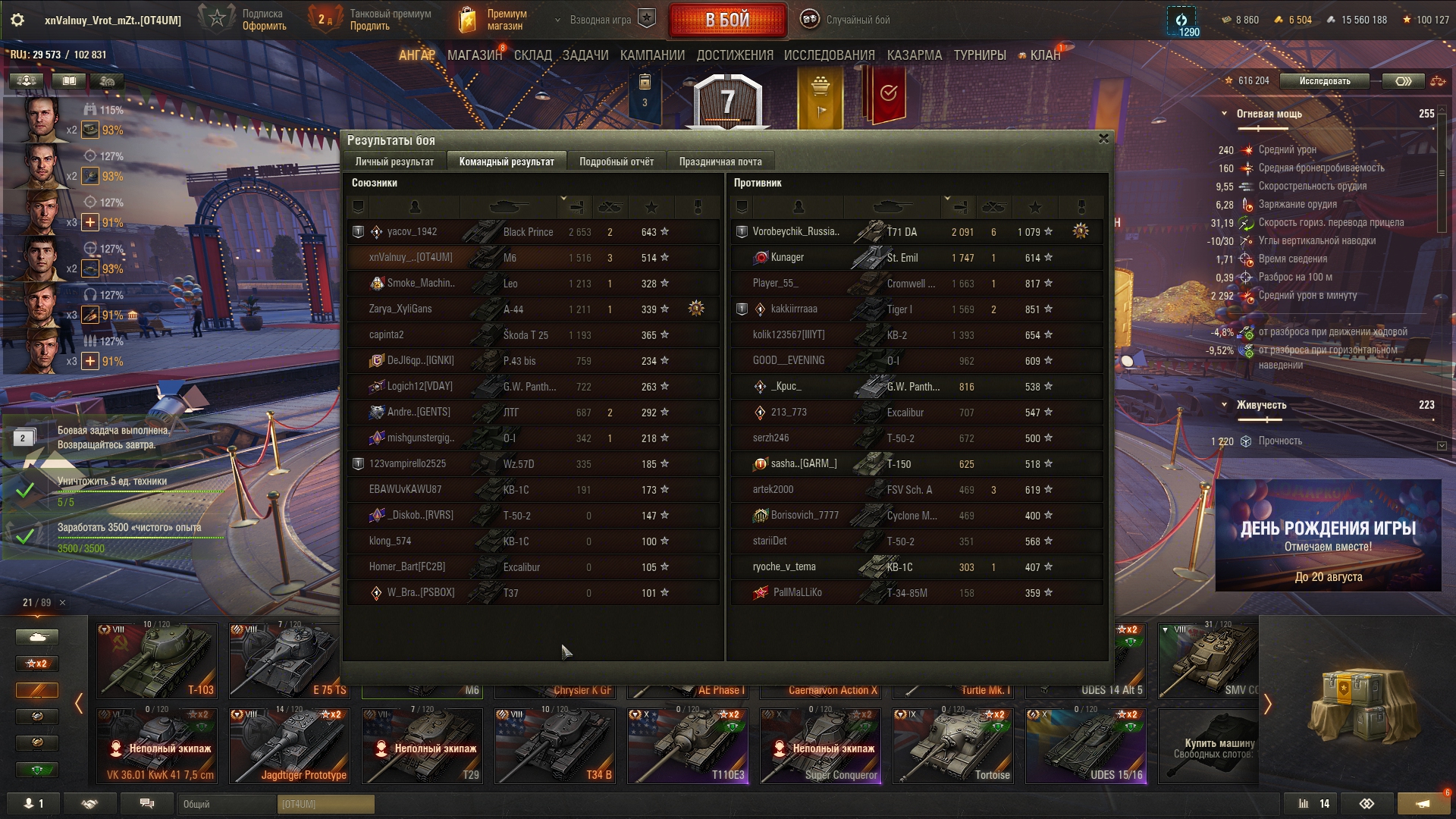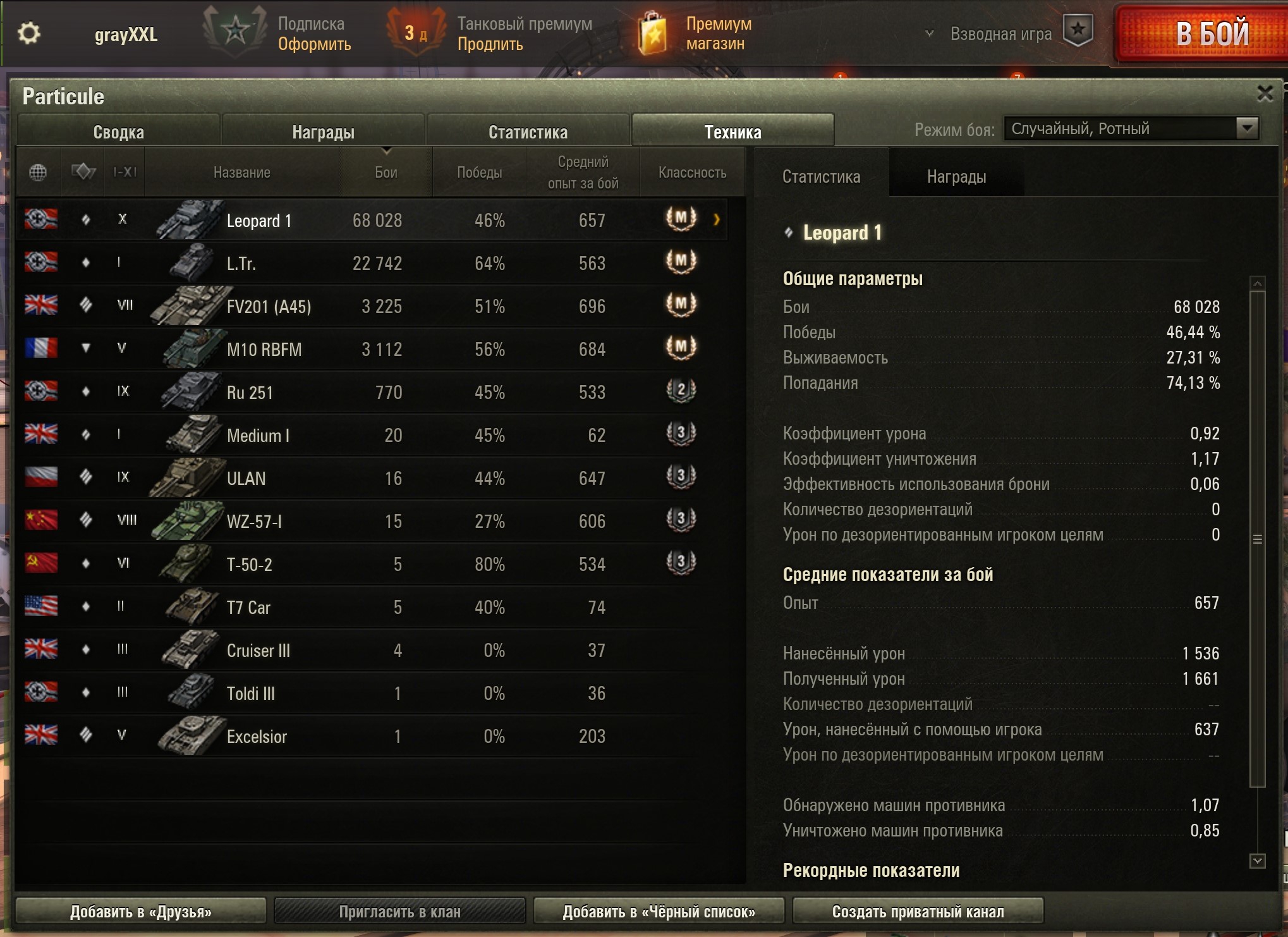 Что-то сегодня танкисты были не такими щедрыми на коробки, как до этого, хотя были бои с хорошим насветом и уроном, как на 10, так и на 8-9. Кидайте ники на добавление в друзья в тред или сами добавляйте DCXVI. После др можете просто удалиться.