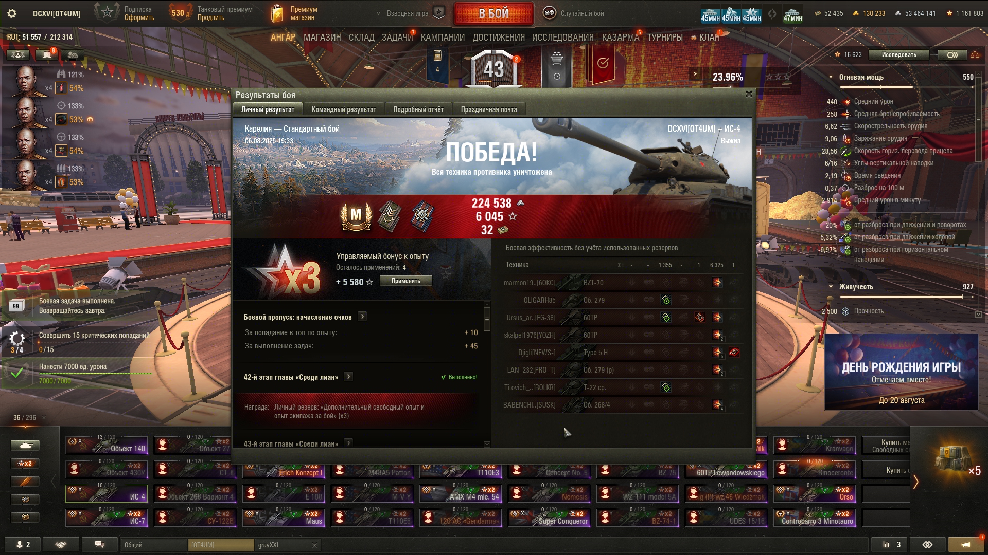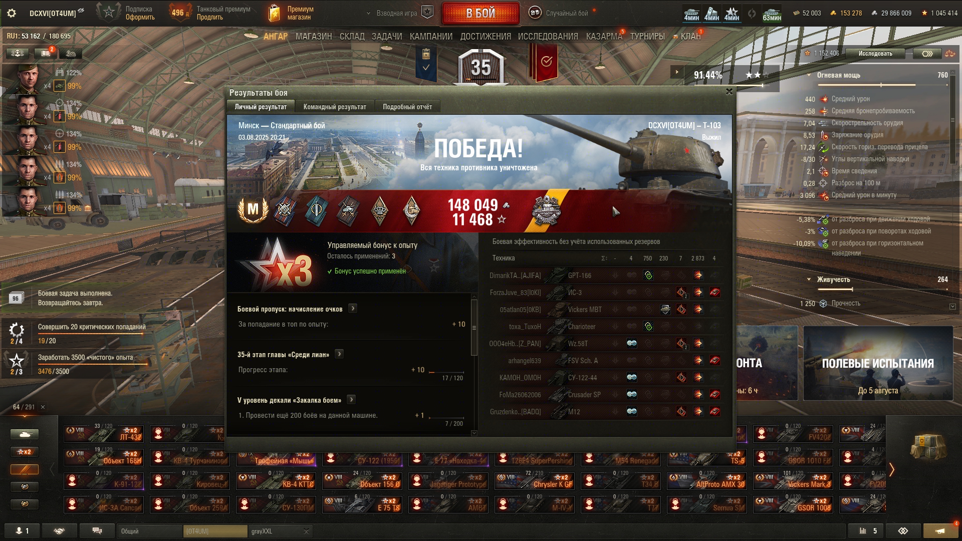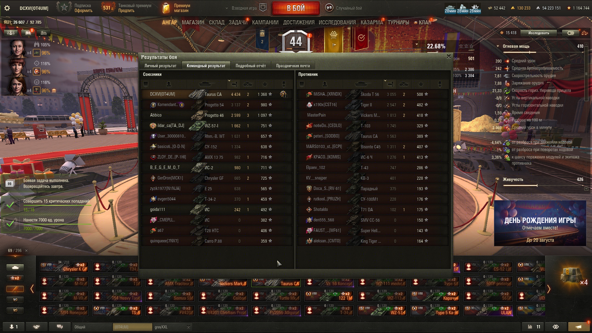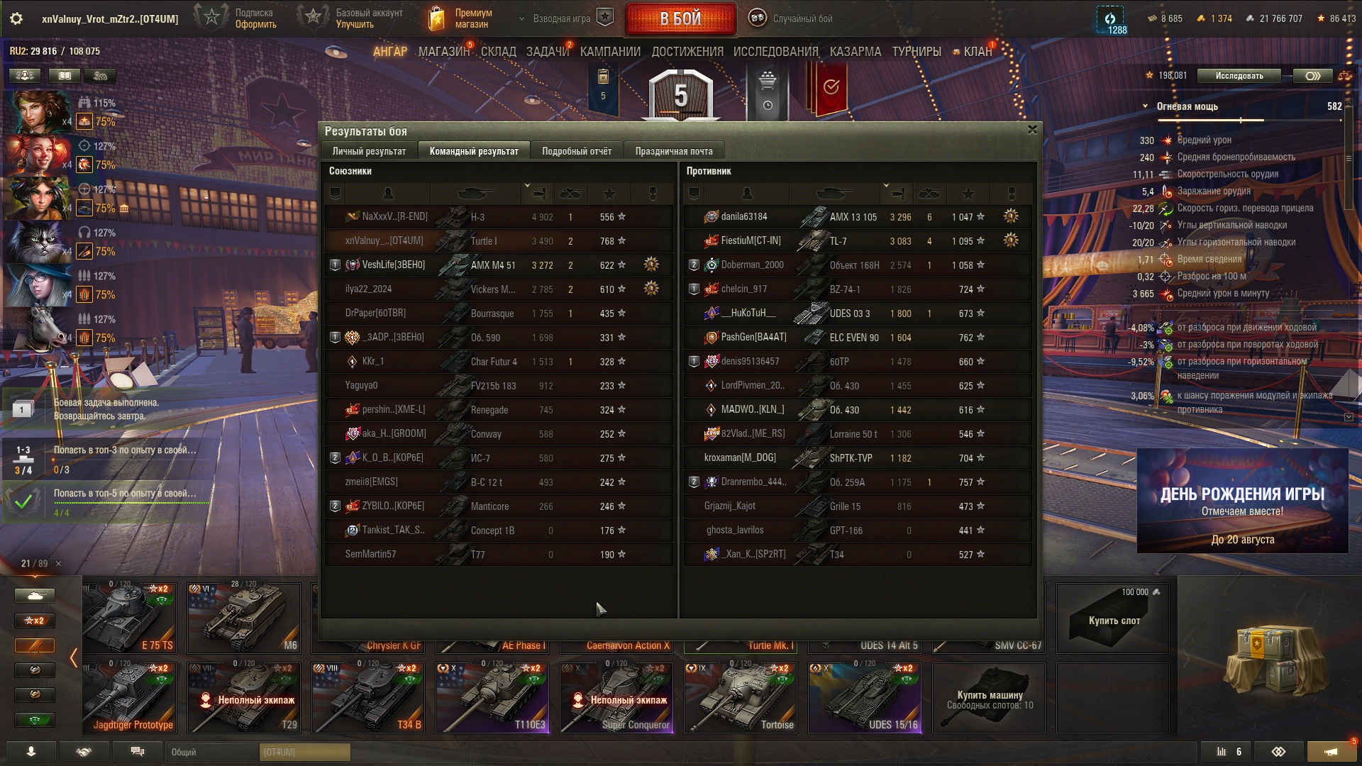 Что-то сегодня танкисты были не такими щедрыми на коробки, как до этого, хотя были бои с хорошим насветом и уроном, как на 10, так и на 8-9. Кидайте ники на добавление в друзья в тред или сами добавляйте DCXVI. После др можете просто удалиться.
