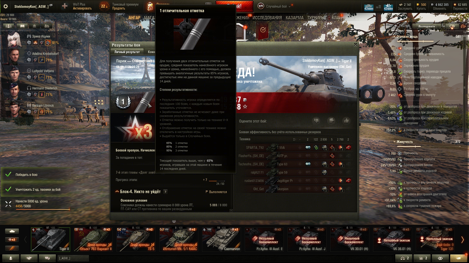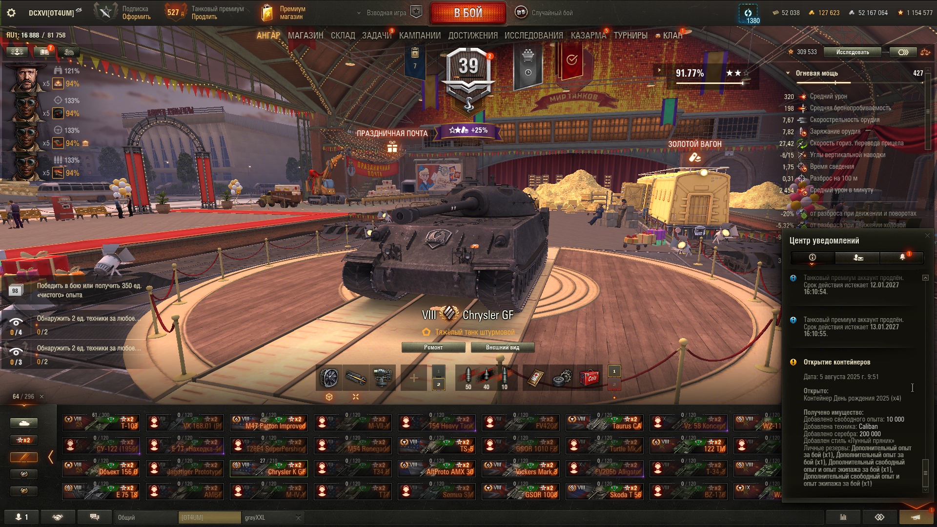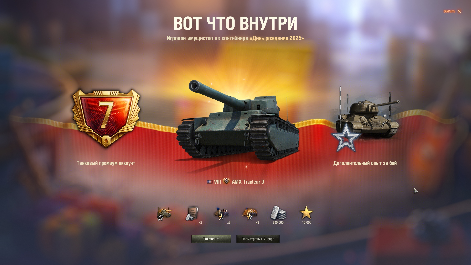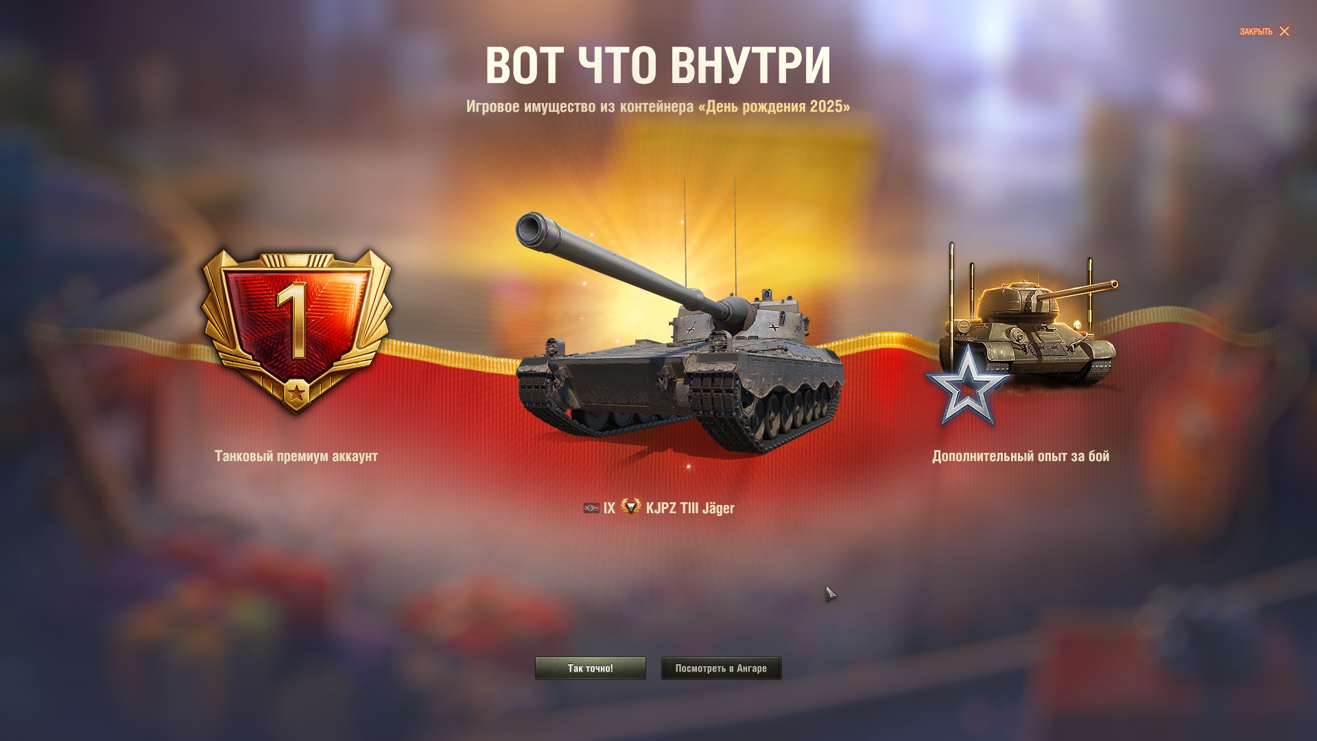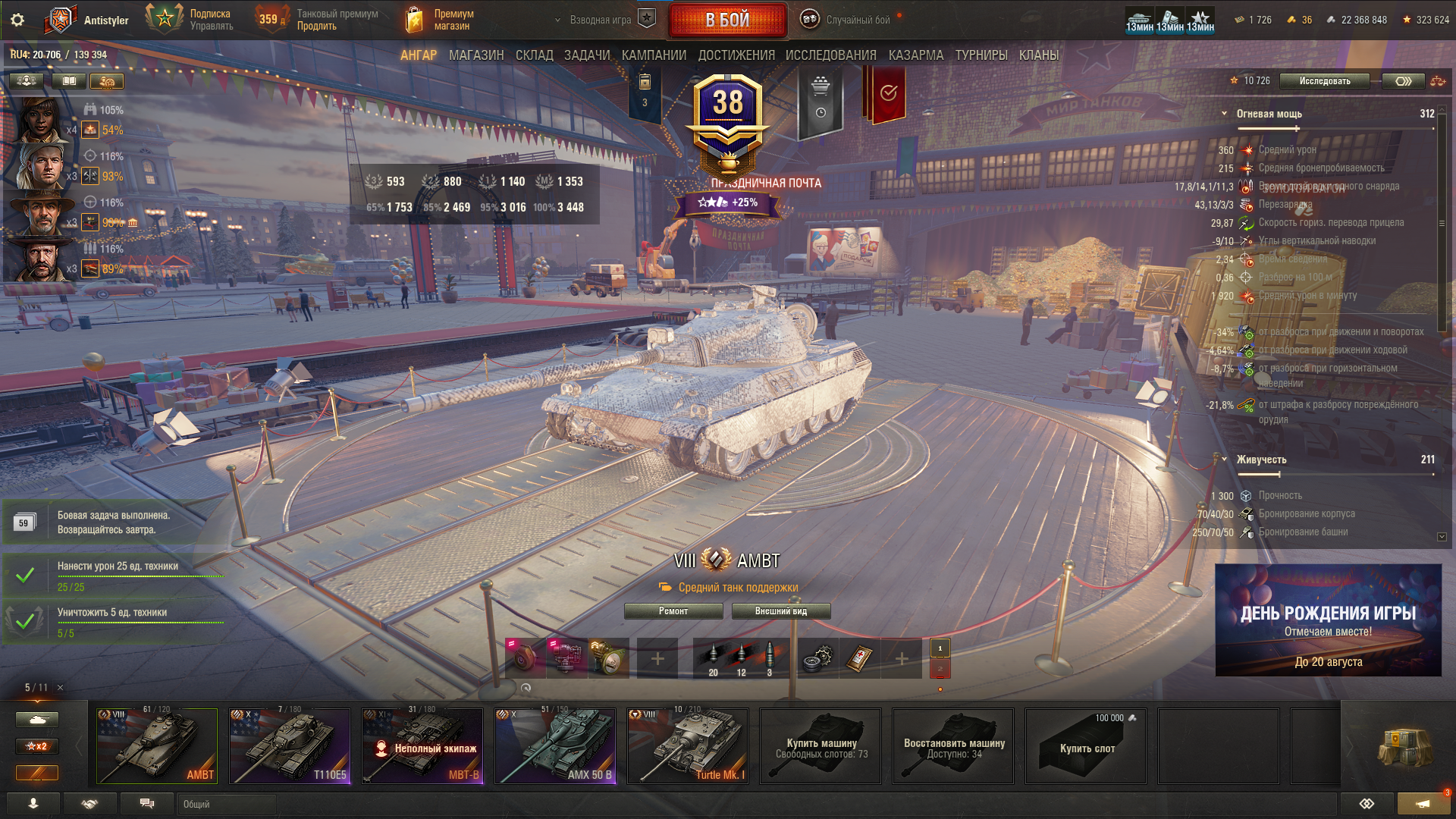 Как всегда, праздничная акция оказалась с большим подвохом. Так называемый "Золотой вагон" опустошился за несколько секунд. Я хотел по 240k серы обменять билетики, но пока нажимал на кнопки обменял уже по 360k. Хотя начал строго в 20:00, в ту же секунду. Золото пустил на заебавший меня Зов Сокола. И не прогадал, мне выпало два танка - 68 и Сокол. Наверное многие знают как работает вероятность открытия контейнера в этой игре: чередуется гарант и раннее выпадение. Вот так и мне выпало: сначала сокол гарантом, потом немец где-то в 24 контейнере. Что касается боксов на ДР, мне они мало интересны, сейчас ковыряюсь по остаточному принципу, и кстати золотые билетики теперь хуй выпадают. А как у тебя проходит праздничная акция, Антоша?