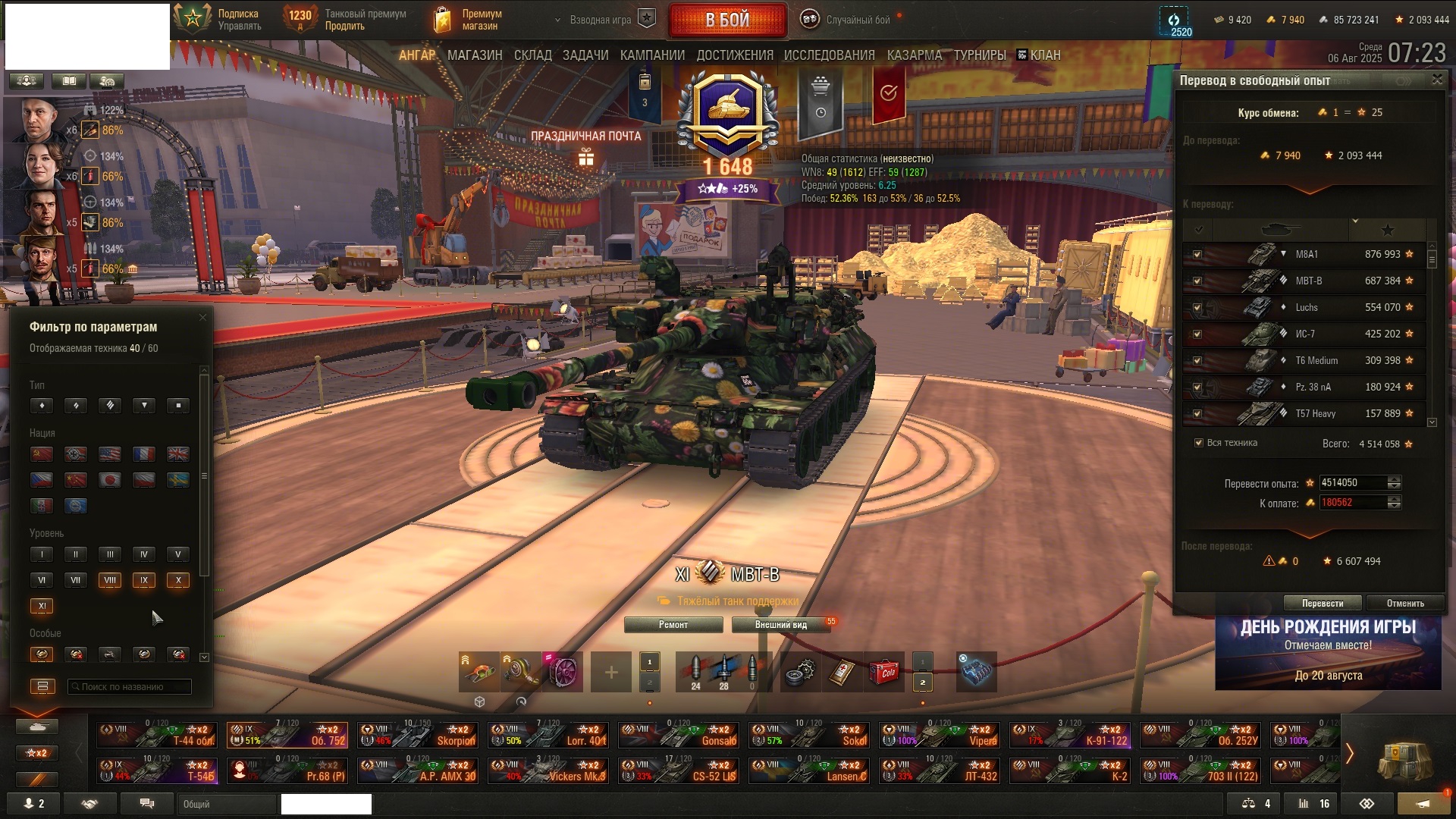 >>50078505 Жирненький акк, почти все ветки, орбита на 7 этапе, куча премов и акционок 10 лвл, с коробочек танчики, включая шкоду и тд. Прем дней 800+ с игрового накапало. Можно было бы ценник задрать раза в 2-3, но за такую цену не верю, что найдутся покупатели. Особенно когда скама дохуя. Вернул хоть какую-то часть вложений и похуй.