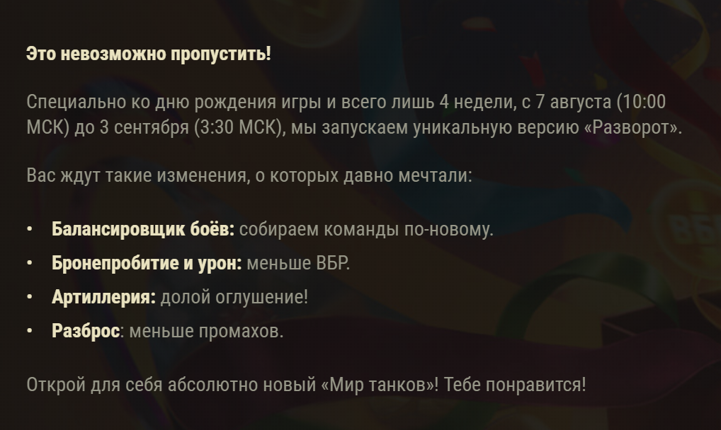 Как бы обратной реакции не было, что танкист настолько возбудится за месяц что играть в старой игре уже не сможет и пойдёт отток игроков ввиде бунта что оставте как было или я ухожу лол