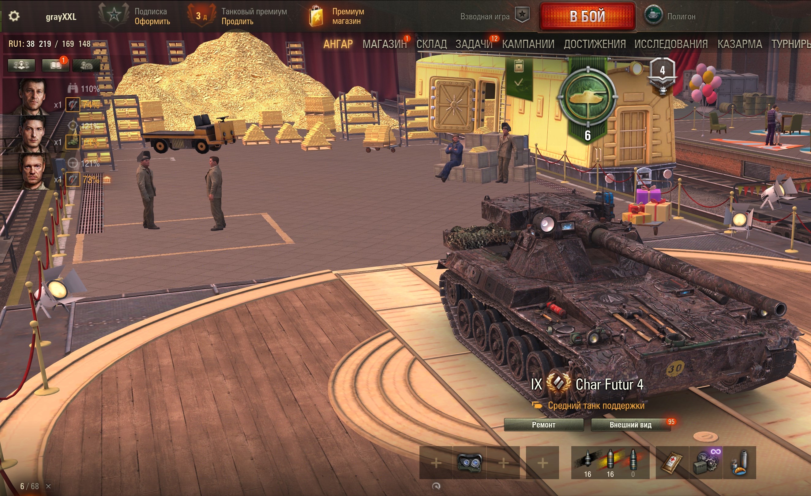 >>50089177 Да я бы наоборот голду бы на серу поменял скорее >>50089174 Ну у меня только одного танка нет из тех что доступны, думаю его взять а остальное в коробасы