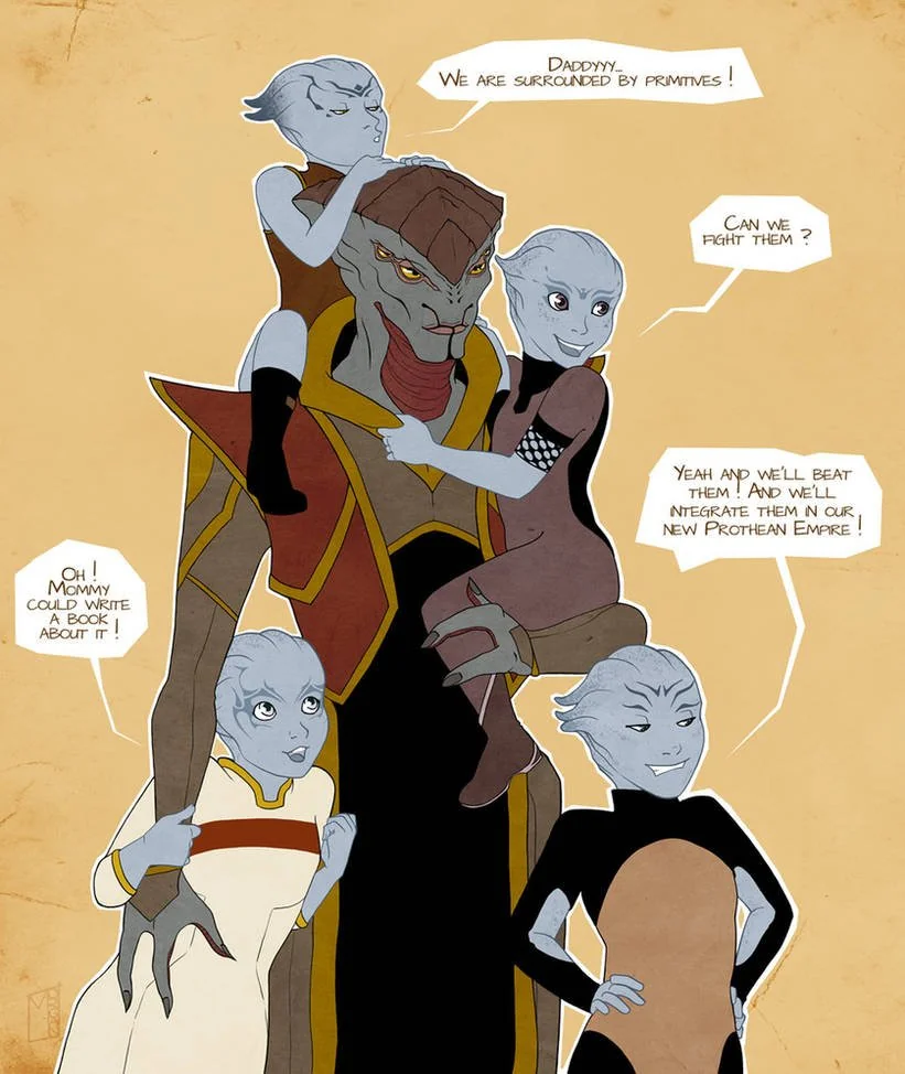 >Текущие расы это прям самые умные расы во вселенной, никогда никто не пробовал такие трюки проворачивать, ага. У протеан почти получилось, из-за малой численности подохли. Один Явик в холодильнике остался. А кроганы вот какие волшебные, за год свою популяцию увеличивают тысячекратно.