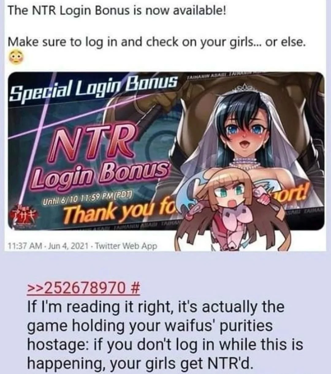 Конечно, обычная VN + активное использование всяких мессенджеров, инстаграмов и проичих онлифансов, где шлюха красуется - еще лучше, но пока хватит и просто этого всего в телефоне. AI CG уничтожит (уже уничтожил) богомерзкий ДАЗокал. Люди через 20 лет будут смотреть на все эти ДАЗокальные поделия, как мы сейчас смотрим на игры на флеше. И сюда же всё это дерьмо на РПГМ мейкере, просто фу нахуй.